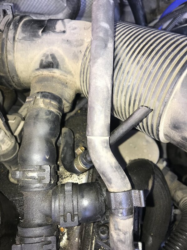 @Dangi, Encore une question stp. Aujourd'hui j'ai revisité sous le capot et cette durite/tuyau est pétée (complètement fendue, ça se voit pas sur l'image), je viens de m'en apercevoir en la soulevant pour voir qq chose en dessous. Peux-tu identifier également cela? J'ai demandé à chatgpt mais il hésite entre PCV breather/tuyau de reniflard, je crois pas que ce soit cela et Tuyau du système d'injection d'air secondaire (SAI) ou encore Tuyau à vide pour le servofrein ou le collecteur d'admission. Une confirmation de ta part serait top!