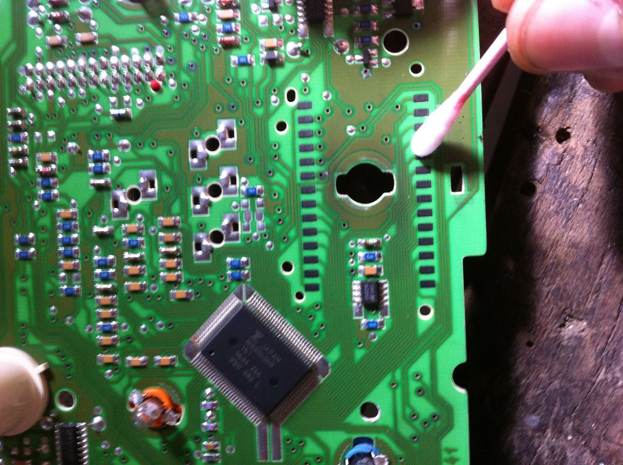Salut, je viens de nettoyer les contacts, ça marche un petit peu mieux j'arrive à lire le kilométrage mais c'est pas encore ça... Si ça intéresse quelqu'un.e j'ai fait quelques photos, c'est pas bien compliqué : Pour enlever le compteur : Dévisser les deux vis cruci du bandeau (à droite et à gauche du volant) dévisser les trois vis cruci qui tiennent le compteur devant. retirer légèrement le compteur et débrancher les cosses Ensuite pour le totalisateur : - déviser les 8 vis torx T10 qui tiennent le couvercle de la partie centrale, plus les deux vis qui tiennent la prise jaune et débrancher la prise bleue. - défaire la platine de circuit imprimer qui tient par deux clips aux extrémités (la tirer délicatement) - dévisser les 4 vis torx T8 qui tiennent le support d'écran de totalisateur. - nettoyer les contacts (j'avais pas d'alcool, je l'ai fait au nettoyant contact sur un coton tige) - remonter dans le sens inverse. Et voilà c'est pas parfait mais c'est à peu près lisible : Pour info la l'écran du totalisateur (pièce blanche) porte la référence 88 352 396, je n'ai pas regardé si ça se trouvait sur internet, mais à mon avis le mieux est de trouver un compteur d'occaz pour avoir toutes les pièces, les ampoules, etc. -