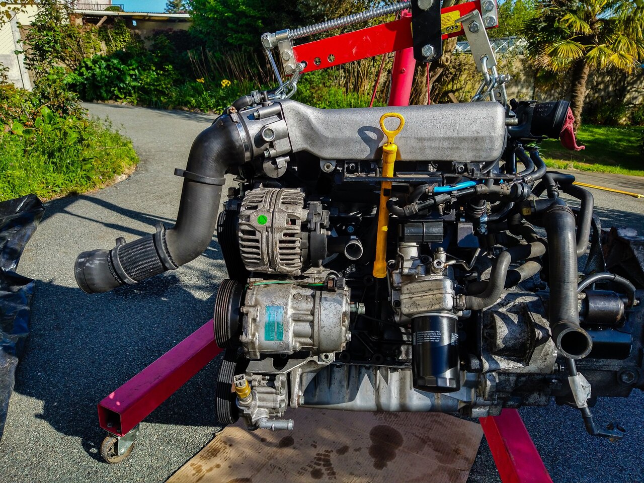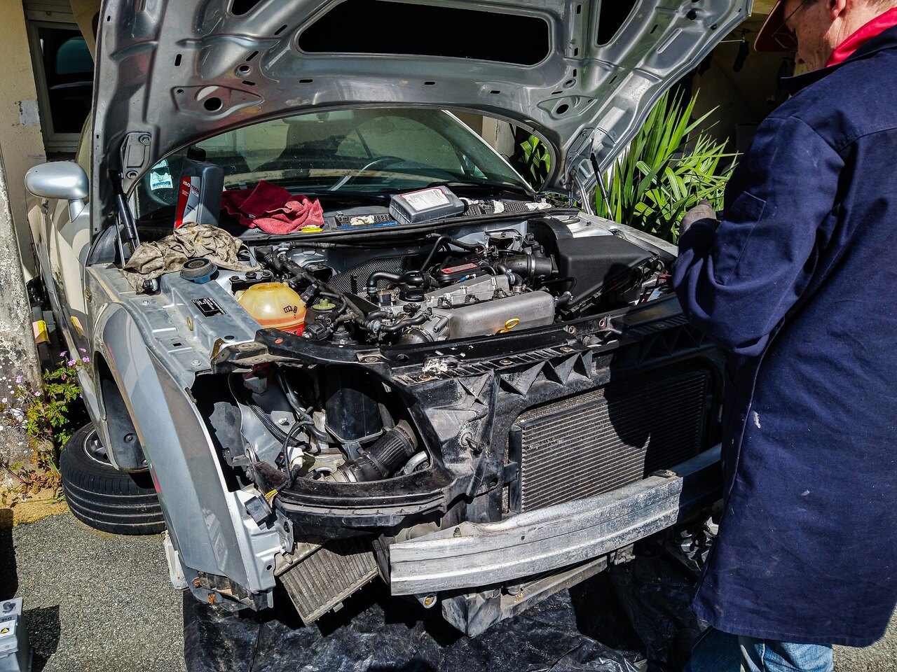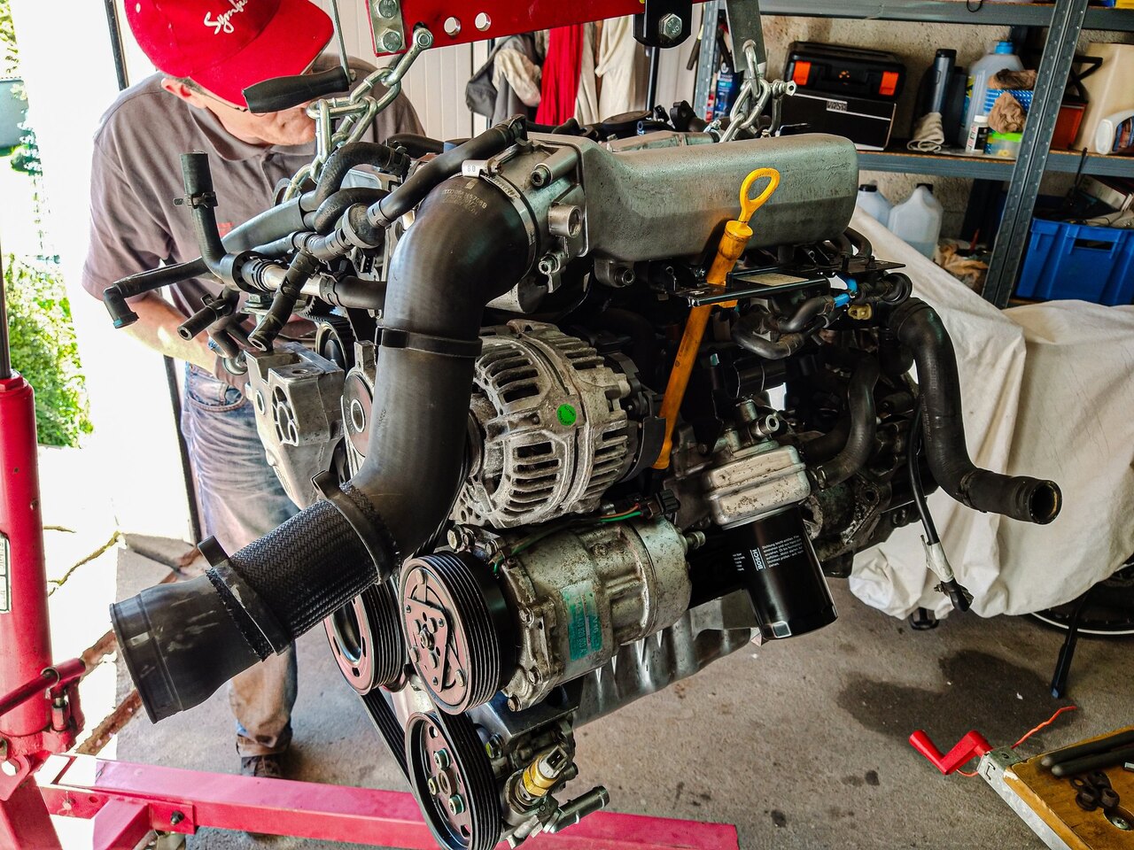 Bonjour à toutes et à tous, Je viens vous apporter des news a propos du projet. J’ai pu m’y remettre ce weekend avec l’aide précieuse de mon père. Donc on a commencé par mettre cette fameuse visse M7 en place et remis l’ensembles des accessoires. Ensuite on a remis quelques colliers et on a remis les protections thermiques. On a sorti le moteur du garage (ce qui n’était pas facile ^^) et on a préparé la voiture à re-recevoir el motor ! (non ma voiture ne repose pas sur ses jantes, rassurez vous) Tout s’est bien goupillé et on a pu remettre l’ensemble des capteurs et durites. Bon … Dans la foulée, on a dû refaire le « capteur » sur le couvre culasse qui a pris son indépendance… C’est un truc qui permet d’enlever les interférences de l’allumage. On a remis de l’huile dans le moteur, du liquide de DA et de l’huile dans la boite. On a remis la tringlerie de boite toute neuve. On a amorcé le moteur en huile. Un câble, une batterie et hop ça tourne. On entend bien les compressions et je confirme (pour la 7 fois je pense) que rien est en train d’applaudir dans celui-ci. Ensuite, on a remis le radiateur mis de l’eau et remplis tout ça avec du G12. On a réinstallé la boite à air, l’intercooler, … Bon bah … Je crois que l’on peut démarrer… Je monte dans la voiture pleine de moisissure du fait de ses 1ans et demis d’immobilisation et je démarre. Tout fonctionne bien. Le moteur a quelques ratés, mais l’essence est très vieille donc je pense que ça vient de là. Pas de voyant moteur ! = Nickel Plus de bruit de poussoirs au bout de 5 minutes = Nickel Le circuit d’eau qui se purge entièrement = Nickel La température d’eau qui est à 100°C et pas de ventilo qui fonctionne = Eh M**** Je commence à regarder tout ça de plus près et j’ai ma durite en haut du radiateur qui est bouillante, et la durite du bas qui est froide. Je regarde un peu sur internet et j’ai une piste pour le calorstat… Du coup, j’ai acheté un cardans et calorstat. Je me sens un peu bête d’investir autant d’argent de temps et de me dire : « ouais ! Faisons une économie de 9,50€… » La prochaine fois, quand je retournerai là-bas pour bosser sur la voiture (normalement le 4-5 mai) Je réparerais mes erreurs. Le point positif c’est qu’elle démarre et que tout va bien (si on fait l’exception de la surchauffe). Et vous savez le pire dans tout ça ? C'est que j'ai même pas pris l'apéro ! Mais, j’ai deux petites questions : La première, c’est pour le contrôle technique. Le mien est périmé depuis 1 ans et je sais que les contrôleurs montent dans les régimes pour faire le test pollution. Est-ce que c’est « risqué » pour mon moteur ? Est-ce que je le fais tourner pendant plusieurs heures avant de l’amener au contrôle (par exemple pour mettre la partie direction et suspension) ? La deuxième question concerne les cardans. Est-ce que quelqu’un connait les valeurs de couple de serrage des visse au niveau de la boite et au niveau du moyeux ? A bientôt !