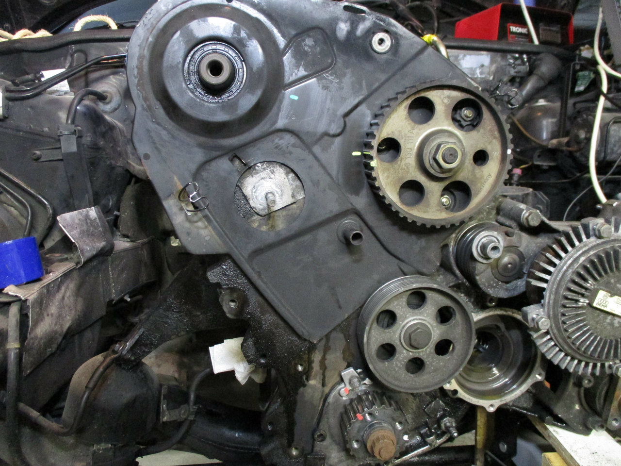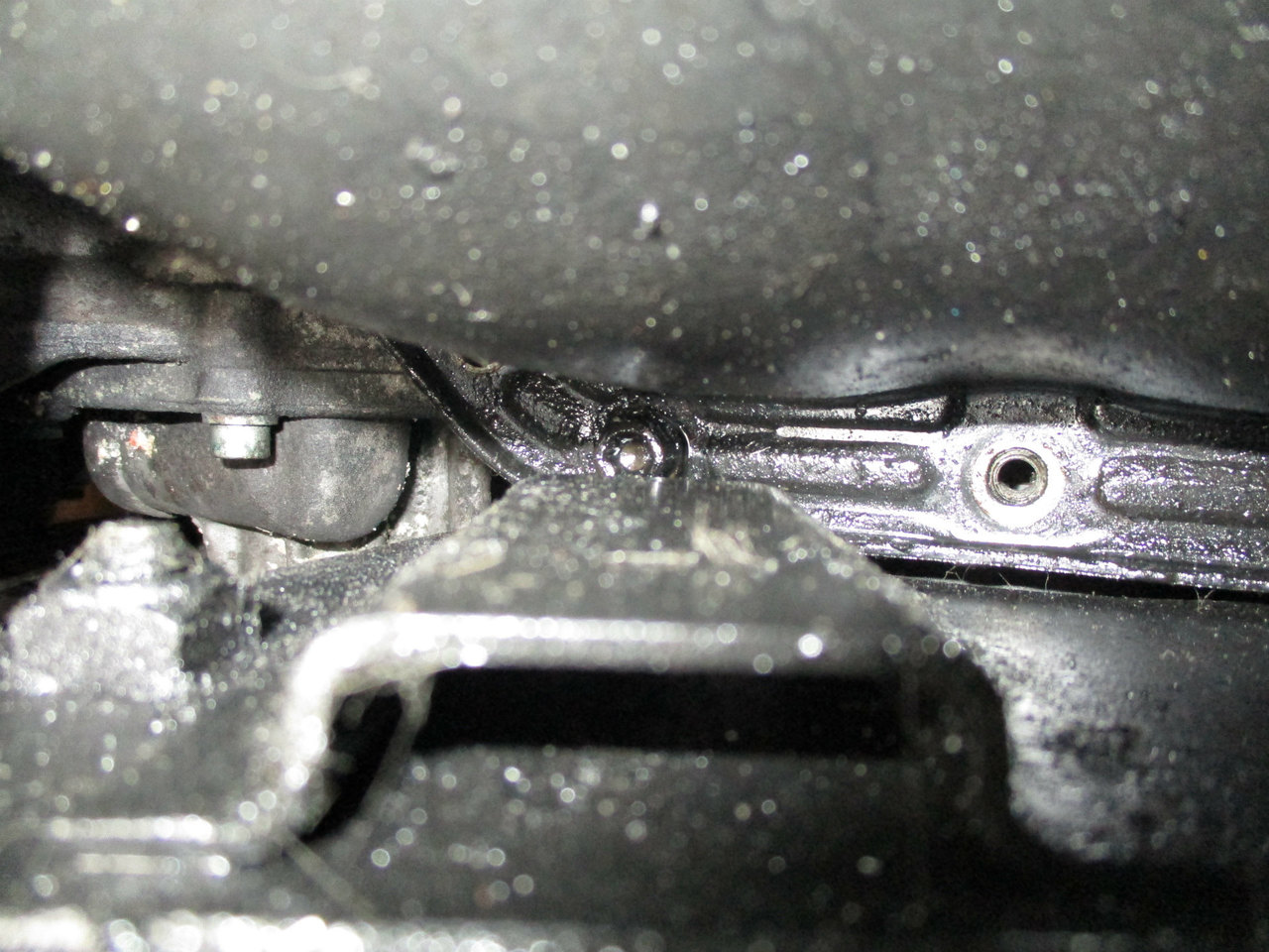 Donc après avoir réparé les filetages des bougies je continue avec le problème suivant: de l'huile un peu partout dans la baie moteur (au moins y'a pas un pet de rouille...) --> j'ai identifié au moins les joints du cache culbuteurs à changer et vu que je change l'embrayage et la distri j'ai décidé de changer les joints spi du vilebrequin, le joint du carter d'huile (chi*** à faire mais je suis quasi sûr qu'il fuit, et puis j'ai déjà commencé de toute façon...) et le joint spi de l'AAC en plus des joints du cache culbuteurs. Solution: changement de tous les joints qui sont en contact de près ou de loin avec l'huile. Après avoir retiré les courroies et la plupart des poulies on y voit un peu plus clair : Le joint spi de l'AAC fuit, c'est sûr : Le joint spi du vilebrequin côté boite fuyait aussi de manière certaine, mais pour les autres joints spi j'étais moins sûr; je les ai quand même changés vu leur faible coût et la difficulté d'accès. J'avais de gros soupçons sur le joint du carter d'huile par contre. Le truc c'est qu'en principe pour démonter le carter il faut sortir le moteur... mouais... j'ai pas le matériel et même si je l'avais c'est quand même une grosse opération donc plan B... Evidemment toutes les vis sortent sans trop de souci à par une seule dont l'accès est bloqué par un renfort sur la tôle du support moteur avant (j'attendais un peu mieux de la part d'Audi sur ce coup là...) : Bref, j'ai dû démonter le support avant juste pour ça... Une photo côté boite pour changer un peu (j'avais déjà enlevé la flasque arrière du vilebrequin) : Donc, quand je parlais du plan B ça voulait dire cric, cales en bois et parpaings Bon, maintenant il faut remonter. L'arbre intermédiaire et sa flasque : Une fois en place, ainsi que la flasque avant du vilebrequin : On peut ensuite passer au carter en n'oubliant pas de mettre une touche de silicone au niveau des jointures des flasques du vilebrequin : Et côté arrière; on peut aussi voir la flasque arrière avec le nouveau joint (j'ai marqué les vis d'une couleur différente à chaque passe de serrage pour éviter d'en oublier, d'autant plus que j'ai utilisé la méthode en étoile donc c'est facile de se tromper) : J'en ai bien-sûr profité pour nettoyer la crépine de la pompe à huile et changer son joint torique. -