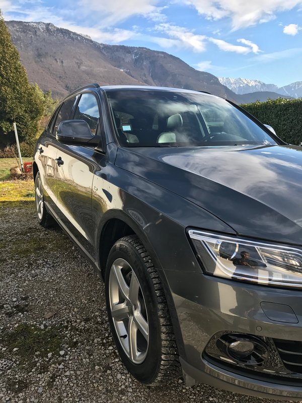 Bonjour à Tous, Comme annoncé dans mon post de présentation, après une petite hésitation, (A5 ou Q5) j'ai fini par trancher, assez facilement, et mon choix s'est porté sur un Q5, quand on habite en montagne, ça me semble plus judicieux. j'ai donc trouvé un beau Q5 3.0l V6 TDI S-Line Quattro S tronic de 2014 chez un concessionnaire Audi qui présente comme neuf (int et extérieur) et qui totalise 127 000 km. C'est un véhicule en retour de LOA sur lequel une révision totale à été effectuée. J'ai négocié 4 pneus hiver (c'est un comble de proposer un Q5 en Savoie au mois de janvier avec des pneus été!!) Le prix est légèrement au dessus du marché, mais avec une garantie totale de 5 ans dans le réseau Audi. Je l'ai vu aujourd'hui et je retourne l'essayer mercredi. Je ferais qq photos pour vous montrer ça. Si tout va bien, il pourrait être chez moi dans quelques temps..... -