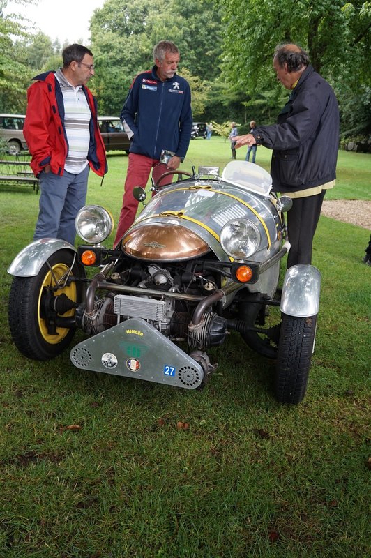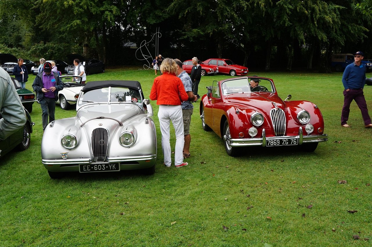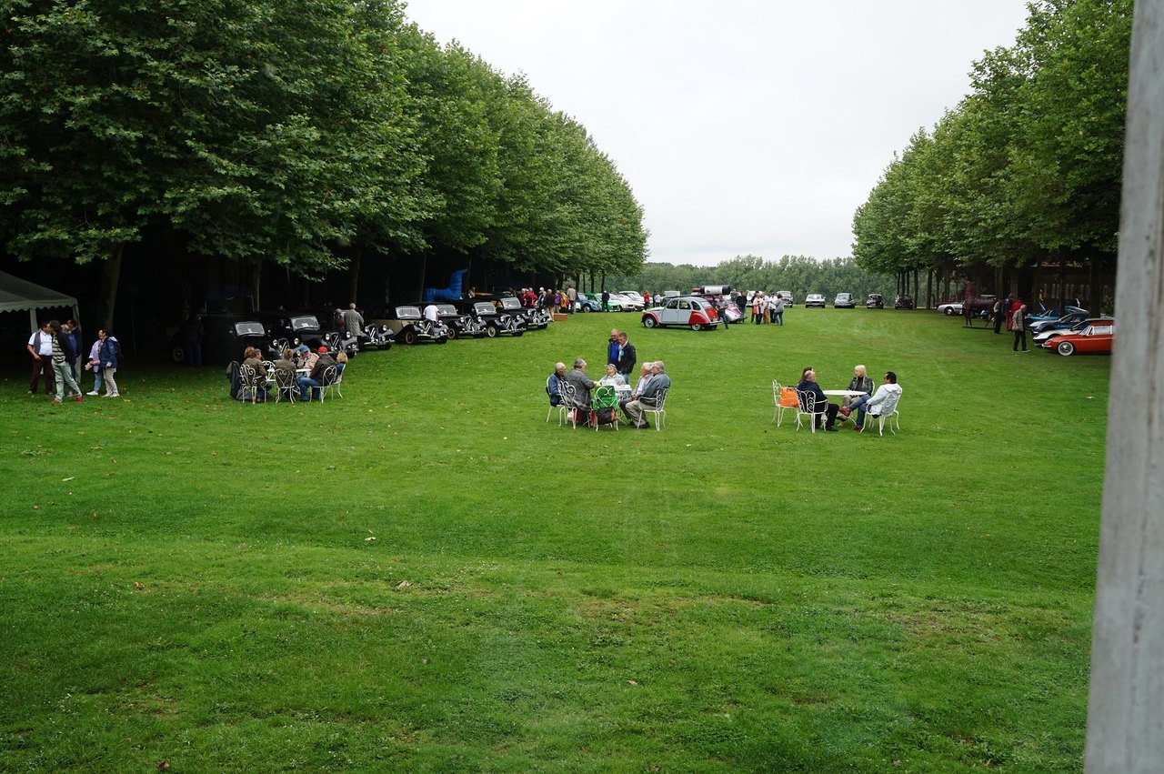 Voici ma contribution, faut quand même dire que l'on n'a eu un sacré coup de bol avec le temps vu la pluie discontinue du matin. Même si tout le monde n'était pas au rendez-vous à cause du temps surtout pour les anciennes, l'organisation est sans faille avec un accueil chaleureux. Le cadre prestigieux des lieux ajoute une plus value à cette manifestation. Tiens un petit quiz quelle est la marque de la voiture rouge vue de l'avant et de l'arrière?. (Les 2 dernières photos). -