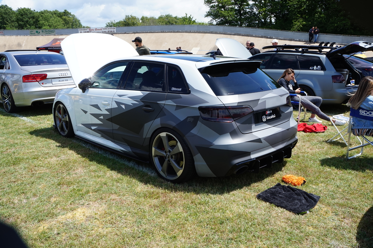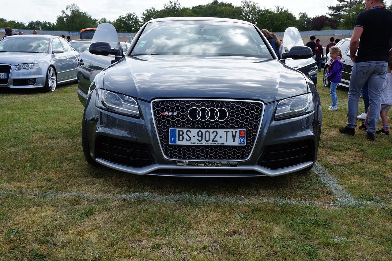 Bonjour Sylvain moi aussi ravi par ces échanges surtout entre possesseur de RS5 ça rapproche Pour ma RS5 voici quelques photos, malheureusement je suis venu avec un kit look carbone incomplet. J'avais commencé par les coques des rétroviseurs, j'ai commandé un kit complet Lame avant, jupes latérales, diffuseur arrière et les deux splits arrière et aileron. Je n'avais pu monter que le diffuseur et les 2 splits arrière reçus 2 jours avant le festival. Voici donc les photos en attendant le reste. En attente: Aileron arrière Jupes latérales Lame avant