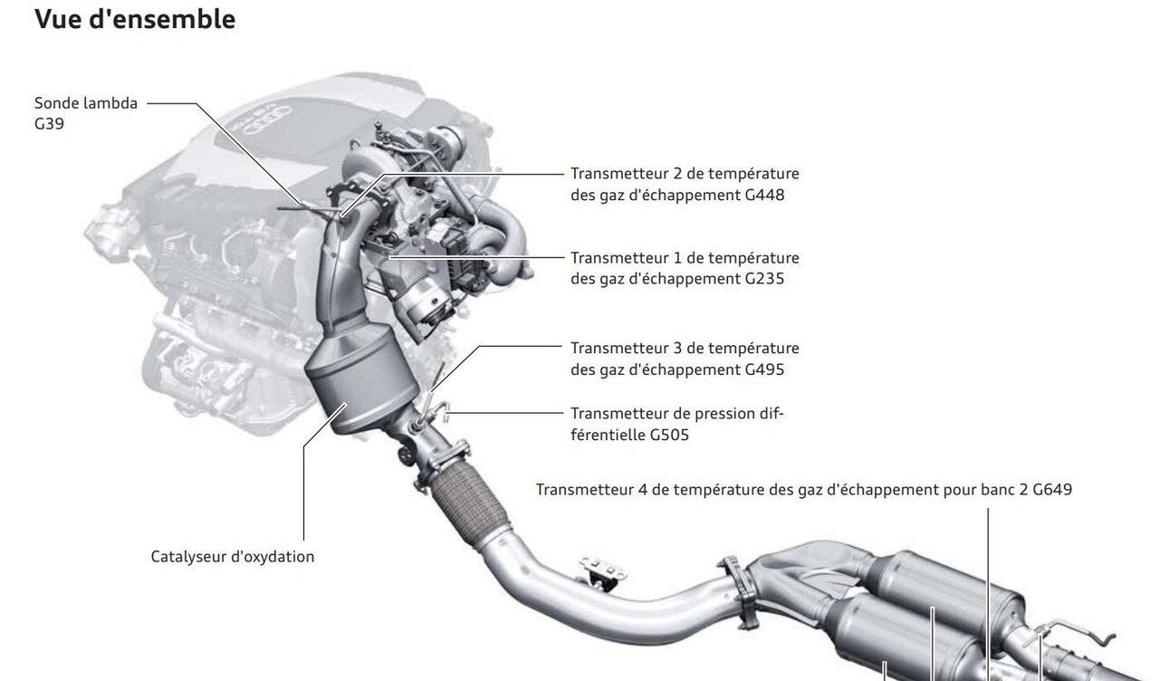 Salut a tous, J'ai trouvé un pdf (en pièce jointe) avec l'image complete de la ligne d'échappement mais sans plus de précision sur les refs des sondes de température. J'ai continué de chercher et je suis tombé sur un logiciel DLinker/carprog2 ETKA https://ifinterface.com/page/page3.php?langid=1 Et j'ai enfin pu sortir la réf de ma pièce: 4G0906088AB trouvé sur autodoc pour environ 65€ pièce SSP_604_Moteur_Audi_V6_TDI_biturbo_de_3,0l.pdf -