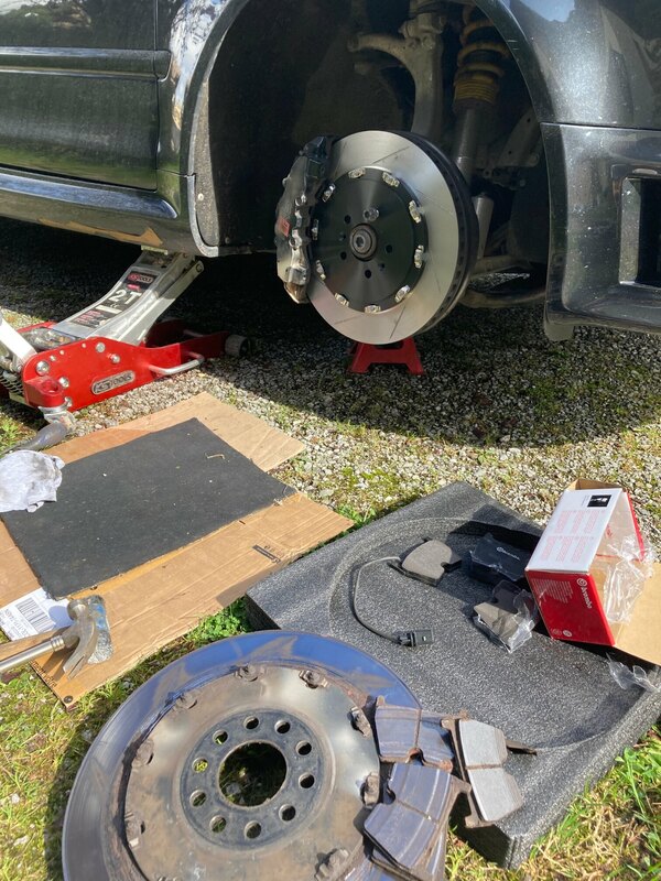 Contrôle technique la semaine prochaine, il était temps de monter les disques et plaquettes AV qui attendaient dans le garage depuis un moment… -