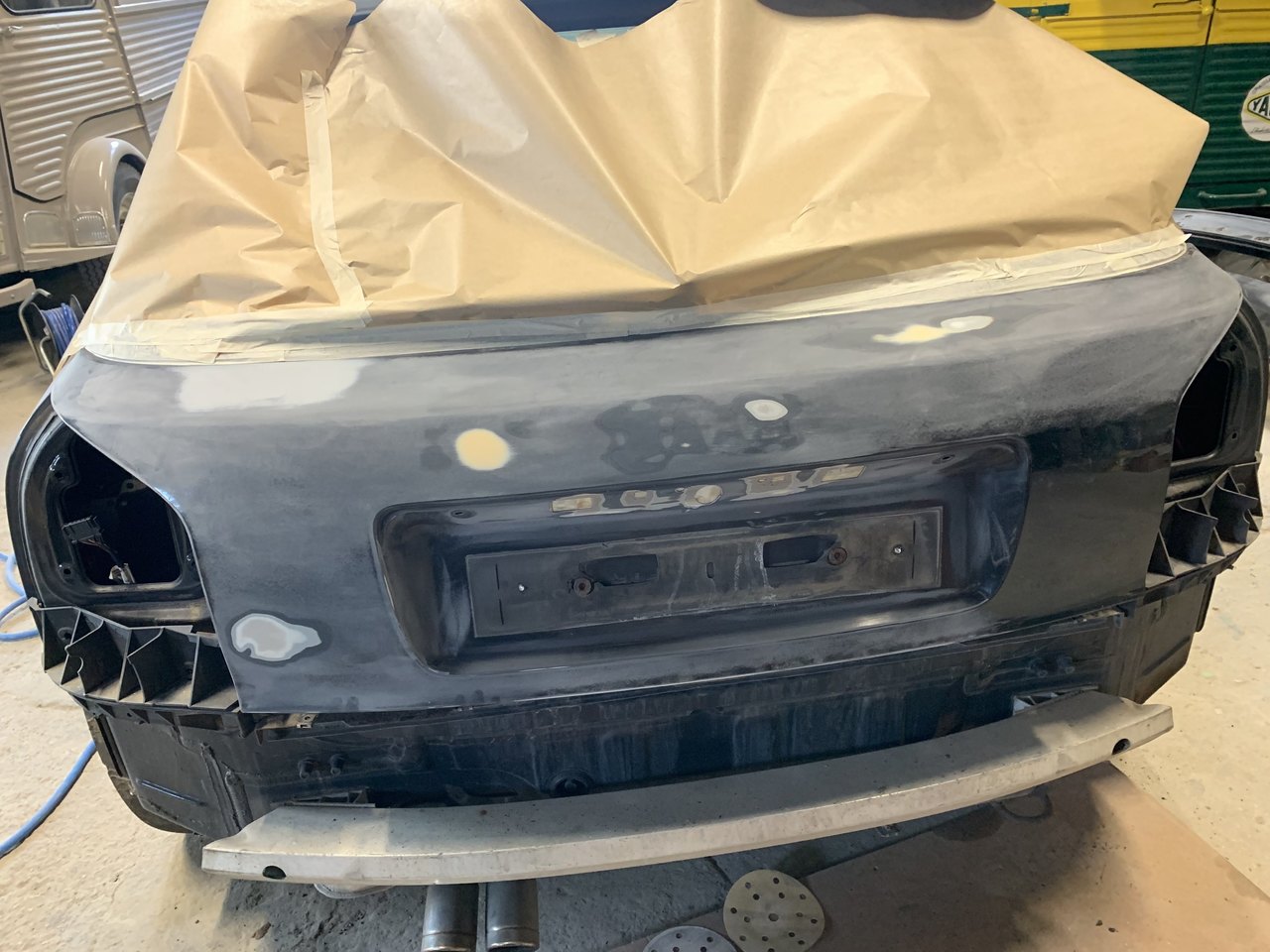 bonsoir les gars, merci pour votre soutien! je ne sais pas encore quoi faire au niveau esthétique, j'hesite a la refaire a l'origine ou y faire une petite préparation "soft" mais sympa, a savoir niveau carrosserie, teintés les feux arrière lègerement, teintes les vitres, et peut être une paire de jantes bien sympa style bbs, je ne sais pas encore. niveau mécanique pour le moment je vais y remettre le décata surement une reprogammation éthanol, et peut être plus tard y mettre une ligne complète mais qui reste assez discret( je veux pas faire le kéké qu'on entend arrivé a 10 KILOMETRES . dans tout les cas je la repeint avec ça couleur d'origine; je vous laisse quelques photos de ma petite avancées! bonne soirée a tous!! -