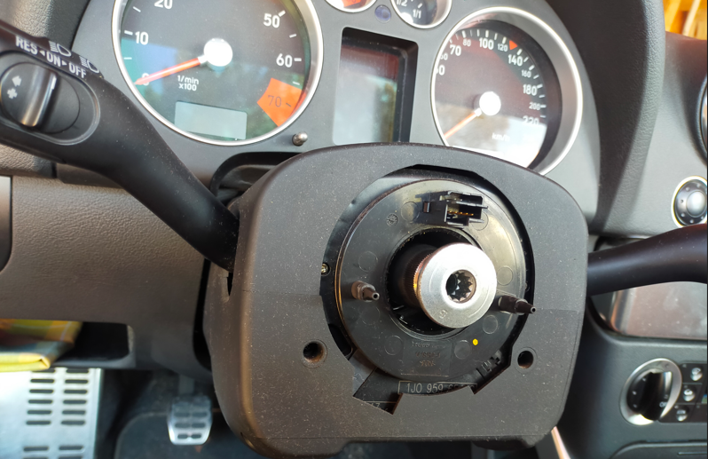 Bonsoir, je voulais apporter un complément à ta réponse. je ne suis pas inscris dans la rubrique TT mais A6 C6, mais mon épouse à une TT MK1 roadster 180cv de 2004 (je mettrais des photos plus tard et rajouterais des commentaires sur le changement du radiateur de chauffage que j'ai changé récemment). j'ai dû démonter le volant et sans m'en rendre compte, fais tourner le capteur d'angle derrière le volant, donc au remontage: voyant + code défaut. Après avoir essayer avec le vcds de le recalibrer, j'ai vu sur internet qu'il fallait aligner un repaire avec l’empreinte à 5h ET un voyant blanc qui apparait dans la lucarne à 2h. ne pas hésiter à faire un tour complet dans un sans ou l'autre pour avoir ses alignements. après effacement du défaut, je n'ai pas eu à recalibrer et le défaut n'est pas revenus.