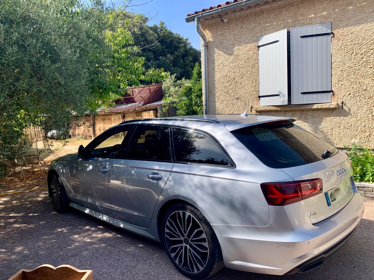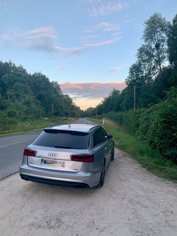 Bonjour à tous, après la première présentation effectuée dans la section dédiée, me voici dans la section A6 C7. Venant d'une 308 GT THP 205 ch (que je possède toujours, mon épouse la conduisant) et la famille s'agrandissant, je vous présente ma première Audi, une A6 Avant 3.0 V6 BiTDI 326 ch Competition de 2016, acquise en juin dernier à un particulier, 103 000 km. Teinte Argent fleuret. Cherchant initialement une essence (kilométrage annuel modéré < 15 000 km, restriction à venir sur le diesel), je me suis laissé tenter par l'opportunité d'acquérir ce modèle en voyant les critiques élogieuses quant au confort, au moteur.. (de plus l'A6 version essence "puissante" > 300 ch difficile à acquérir, notamment S6 (C7) V8 450 ch (rare en occasion) et RS6 récente hors de prix, ou même dernière génération 55 TFSI de 340 ch encore trop chère). Etant également réticent à passer par un particulier, le feeling est réellement bien passé d'emblée avec le vendeur (il était un passionné d'Audi, surtout A6, qui a voulu upgrader pour un Q7 pour des raisons familiales, et regrette déjà d'avoir cédé son A6 Competition ! et songe à y revenir) Voiture fidèle à sa réputation : trajets routiers et autoroutiers faciles... 5000 km faits sur le mois de vacances d'été, un vrai bonheur. Moteur coupleux et souple à bas régime mais également rageur à l'image d'une essence, sonorité typée V8 en mode dynamique, encore plus avec le module de son Kufatech fourni lors de la vente - que j'utilise ceci dit assez peu car le son "de base" en mode dynamique est déjà très agréable. L'équipement optionnel (en plus donc de la dotation propre à la série Competition, comme les jantes 20 pouces) comprend notamment : - Climatisation 4 zones ; rétroviseurs avec clignotant LED, électriques dégivrants escamotables et fonction mémoire, fonction jour/nuit ; alarme antivol ; pack éclairage d'ambiance - Sièges Sport S, sièges avant et arrière chauffants, sièges avants réglables électriquement avec fonction mémoire, appui lombaire avec réglage électrique ; sellerie pack cuir avec centre du volant en cuir noir, seuils de portes avec inserts aluminium - Projecteurs avant Audi Matrix LED, feux arrières LED - Ecrous de roue antivol - Audi sound system, MMI Navigation plus, MMI touch, Audi connect + Audi phone box - Audi active lane assist, side assist, adaptive cruise control, Audi pre sens plus, Audi parking system plus, camera recul, lecture panneaux signalisation - Double vitrage isolant (thermique et phonique) et vitres arrières sustentées, pare-brise double vitrage isolant -