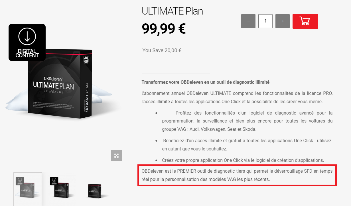 En fait ça a changé dernièrement !!! On peut imaginer que le VCDS va suivre (à moins que ODBEleven n'ait contractualisé avec VAG...) Du coup je pense que je sais ce que le père noël va m'apporter cette année https://obdeleven.com/fr/accueil/165-ultimate-plan-0634359482950.html