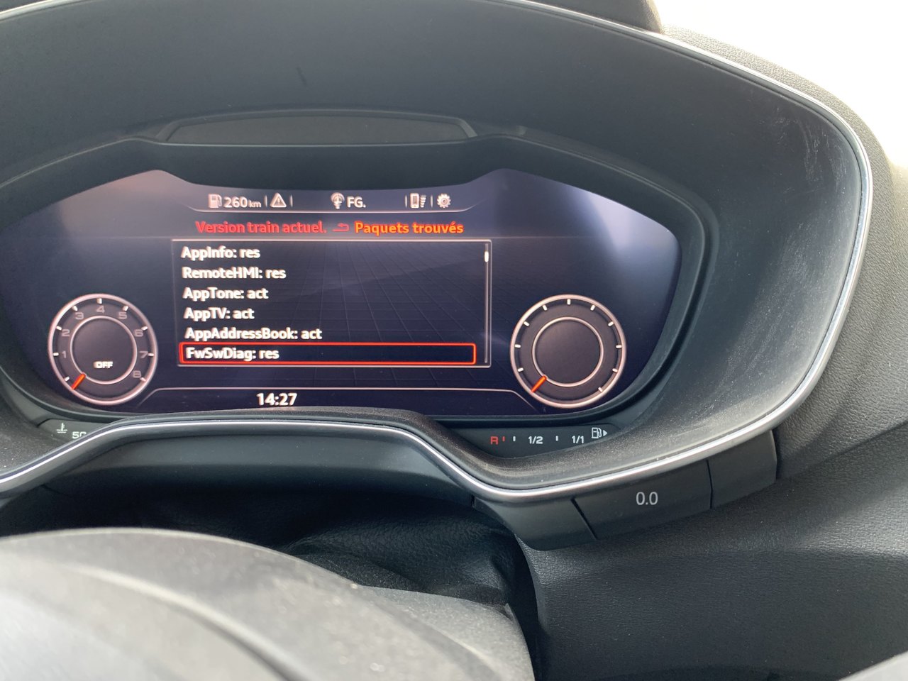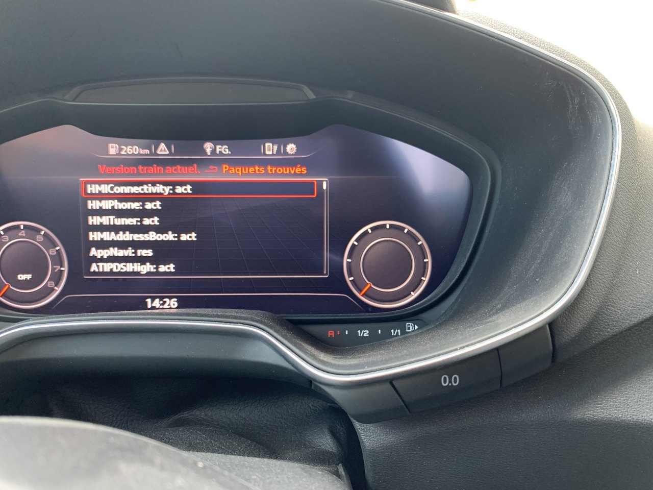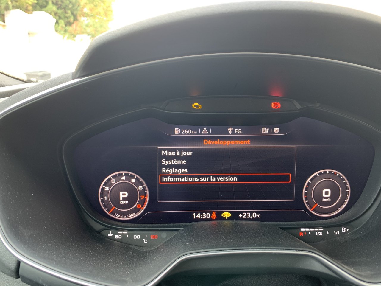 Bonjour, j ai une question au sujet d une Audi TT 8s du 12/2014. C est au sujet de la navigation. Sur l'ordinateur de bord situé dans la boite a gant y a bien deux emplacements carte sd, sur le volant j ai la touche nav, est sur la console centrale au niveau de la boite de vitesse j ai encore le bouton. Or quand j appuis dessus sa me marque sur le virtual cockpit (le système de navigation n'est pas installé). Du coup es ce possible de l installé? Je suis allez a ma concession aubagne et y mon dit qu il allez se renseigné. Deux bonne semaine plus tard on me rappelle en me disant qu il ont eu un retour de Audi France et que ce n été pas possible...