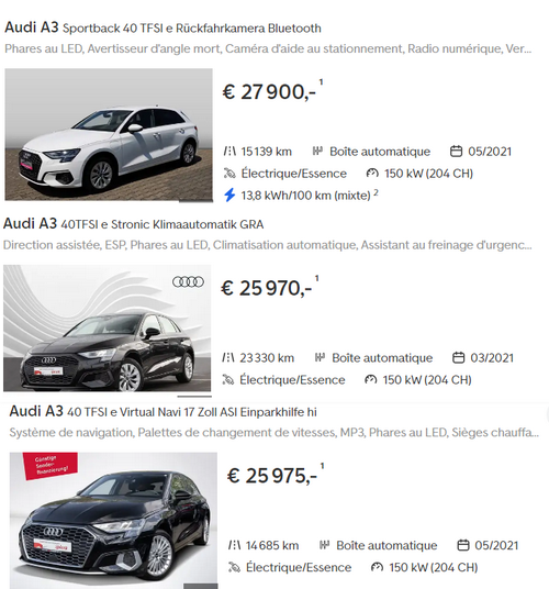 15. Alors, comment te dire .... il ne faut peut-être pas se limiter à chercher sur LBC et la Centrale ou chez DBF Autos ... Après tout dépend de ce que tu appelles "bien équipé" ... si tu veux le toit ouvrant, des sièges sport cuir, le sound-system B&O .... tu sais que ça va exploser le prix. Mais juste pour te montrer que ça existe et démontrer que mon affirmation au dessus était véridique : Mais c'est vrai que ça demande un peu plus de peine que les transactions usuelles ....