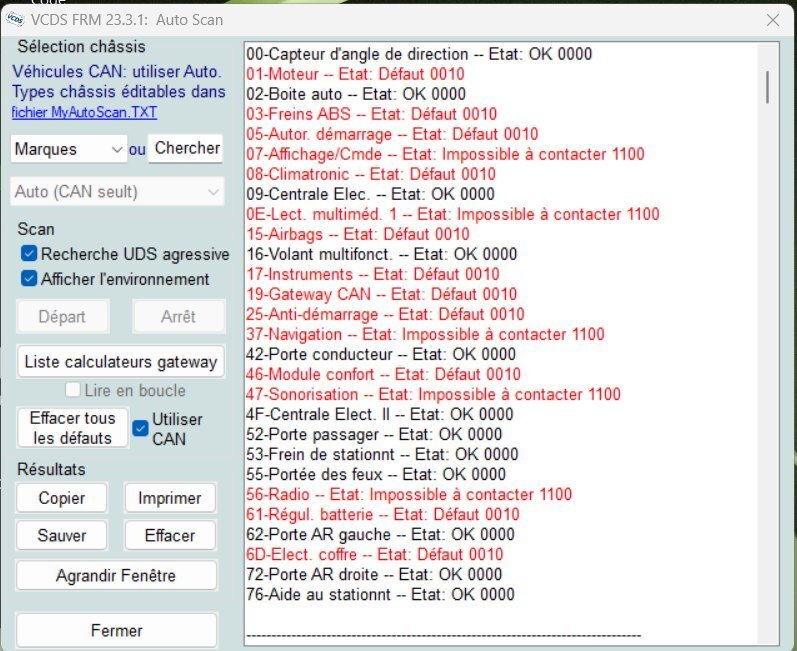 Du coup je décide de prendre mon VCDS et de voir pour aller plus loin, je n'ai pas énormément de code défaut. Je teste les différents actionneur, pompe de gavage, électrovanne de régulation de débit tout fonctionne mais la voiture ne veut toujours rien savoir.