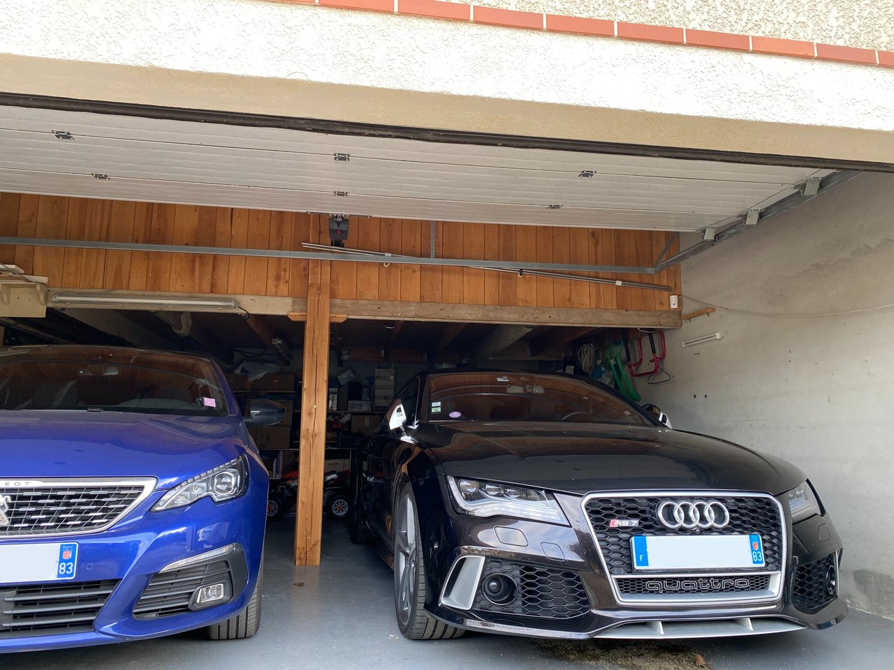 voilà quelques photos supplémentaires (le sable dans le garage c'est pour mon autre véhicule (le coupé que l'on aperçoit) qui a quelques fuites je ne me lasse pas de la regarder