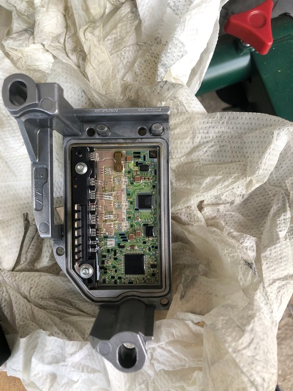 Bonjour amis du forum Je vous présente mon soucis actuel et sollicite votre aide pour m' aider dans ma recherche de panne. Véhicule: Audi Q5 8RB 2012 Hybride avec boite auto 8vitesse OBW ou 8P55AH/FLH Mais alors quel est ce problème Et bien des fois une simple image équivaut à un grand discours Je m'explique il est apparu ce code défaut qui ne m’a pas fait rire du tous je pense comme beaucoup d'autre personne . Après passage VCDS je récupère le code défaut : P0C2B et m'empresse de faire mes recherche. Ce que je peux dire c'est qu'il ne s'agit pas d'une panne courante car je n'ai quasiment rien trouvé sur le sujet (j'ai quand même trouvé l'explication de ce code sur un site de code OBD. Il s'agit d'un problème sur le "signal de rétroaction du module de commande de pompe à fluide de transmission auxiliaire". Plus simplement ce que j'en ai compris un problème sur le faisceau ou la pompe hydraulique additionnel de boite de vitesse. Après démontage de tous les carénage sous le moteur et la boite je commence à investiguer au niveau de la connectique de la dite pompe. Je débranche le connecteur qui ce trouve sur le côté de la boite et inspecte les contacts. je ne relève pas de trace de corrosion ou autre chose anormal Après reconnexion et test le défaut et toujours présent. Je test alors au multimètre si il y a présence de tension sur cette fiche et j'ai bien environ 12V En suis donc la vidange de la boite que je comptait faire de toute façon. Petit point lorsque je démonte le bouchon de contrôle j'ai récupéré 1L de trop dans la boite. Au vu de la quantité d'huile j'en viens à douté de l'horizontalité du véhicule et recontrôle tous ça. Verdict mon véhicule est bien horizontal je ne félicite pas le précédent mécano . Après démontage du carter d'huile rien d'évident ne me saute au visage. Si les gouttelettes d'huile restantes . Je descide de démonter la pompe pour pouvoir la contrôler plus facilement. Je suis étonné de la taille de la pompe et me questionne sur ce quelle renferme. un petit test ohmique pour essayer de comprendre ce qui pourrais dysfonctionné ne révèle rien de flagrant Je décide donc d'aller plus loin et de la démonté. En partie supérieur il s’agit d'une simple pompe à palette qui ne présente aucun dommage puis j'arrive sur ce gros bloc en alu et là je me retrouve avec ..... une usine à gaz Je dirais qu'il s'agit de la commande du moteur "peux être pas à pas" ce qui pourrait explique que même en alimentant celle ci en 12V je n'arrive pas à la faire tourné. A première vu rien de flagrant. Après un bon nettoyage et du spray contact je décide de remonté et de refaire un test. Malheureusement rien j'ai toujours ce défaut P0C2B. J'aurai plusieurs questions pour les connaisseurs et autres : Y a t'il un moyen de tester la pompe hors du véhicule j'ai bien essayer d'alimenter en 12v les 2 gros connecteurs mais je n'ai absolument aucune consommation de courant ce qui me fait penser qu'il manque soit une alimentation soit une information sur le deuxième connecteur. Le problème est que je n'ai pas le schéma électrique et me demande comment est contrôlé ce moteur. Après recherche j'ai bien trouvé la pompe sur quelque que site mais le prix m'a presque causé une crise cardiaque environ 5000€ et il s'agit uniquement des pompe OEM. Quelqu un connais t'il un modèle de remplacement plus abordable ou une entreprise qu pourrait réparé ou proposé un modèle de remplacement. Je vais essayé de contacté ZF pour voir si il on déjà rencontré ce souci et voir si il propose des modèle de remplacement. Je vais aussi essayé de contacté iboites.fr pour voir. En attendant je vous souhaite une bonne soirée et on vous tien au courant de l'avancé dans le cas ou quelqu un rencontre le même genre de souci.