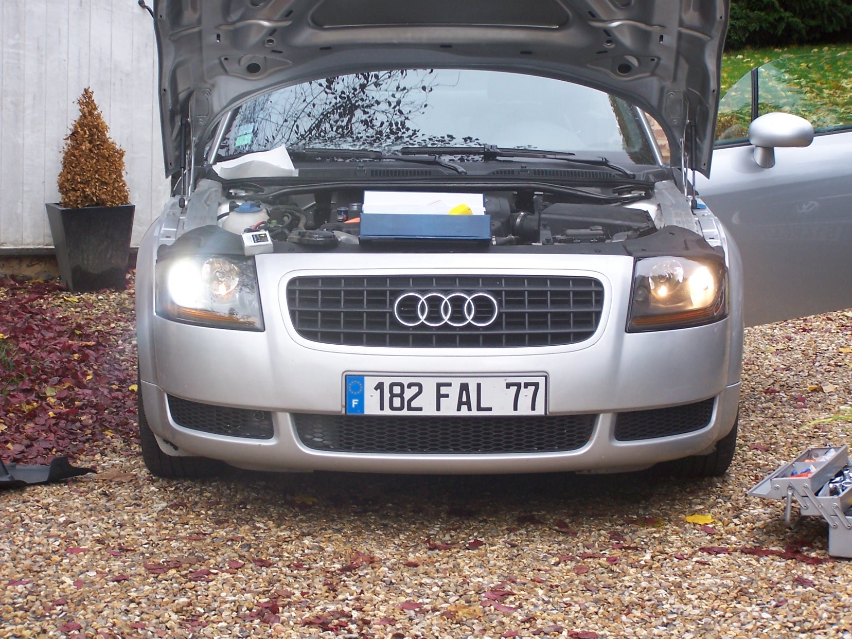 12. Bon je viens vous livrer le résultat de mon expérience : on ne peut pas monter un kit xénon sur lespreux de route du TT Mk 1. En fait l'ampoule H7 est pluggée sur un porte-ampoule en même temps que la veilleuse et l'optique ne peut accueillir une ampoule H7 nue telle que livrée dans un kit xénon. Tant pis je resterai en simple xénon mais je vais utiliser le kit acheté à SouTThblade du forum clan TT (super plan !) pour mon prochain véhicule de fonction : Peugeot 3008. En revanche les veilleuses Leds rendent mieux que les veilleuses jaunâtres d'origine. Je n'ai pas fait de photo car ce n'est pas très spectaculaire non plus. Juste blanc/bleu.