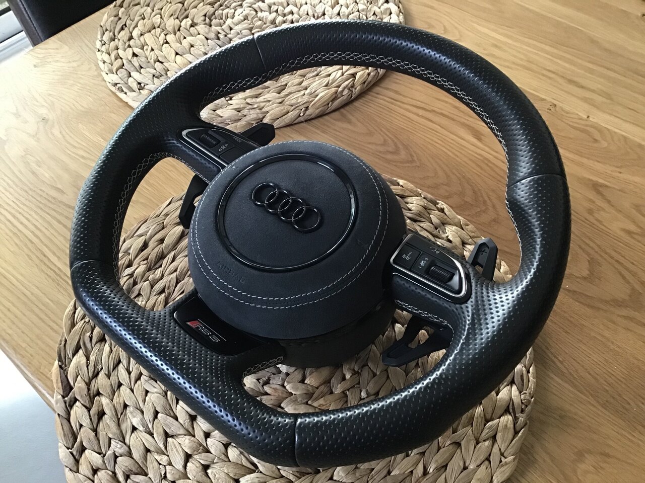 Modification à venir ! j’ai un défaut esthétique sur le cache de l’Airbag, quitte à démonter autant essayer la petite modif. j’avais acheté les palettes type Lamborghini urus pour le Q7 mais je n’ai pas pu les y monter. erreur de commande, je vais voir si elles vont sur la rs5 ! Pour le cache airbag, au début j’avais prévu de le prendre en cuir et au dernier moment j’ai opté pour l’alcantara sans pour autant être convaincu ! Voyons verra déciderai !!!