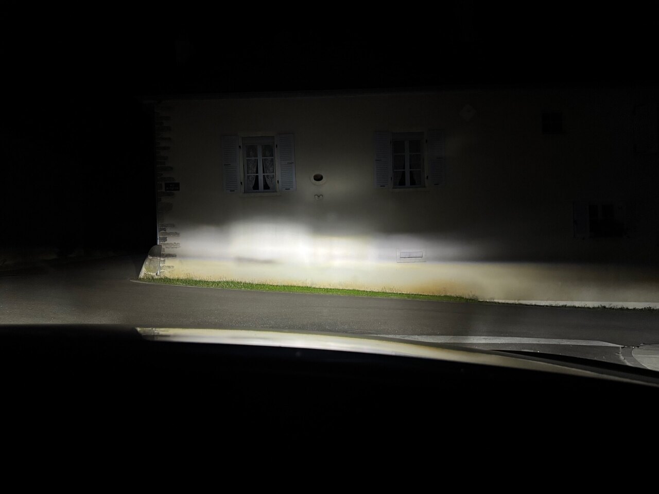Je vous laisse constater sur les photos, les feux de croisements sont correctement réglés (ni trop haut, ni trop bas, % au CT satisfaisant), le faisceaux du plein phare de gauche est clairement plus haut que son homologue de droite. Un écart se crée donc entre le plein phare et le phare de croisement.