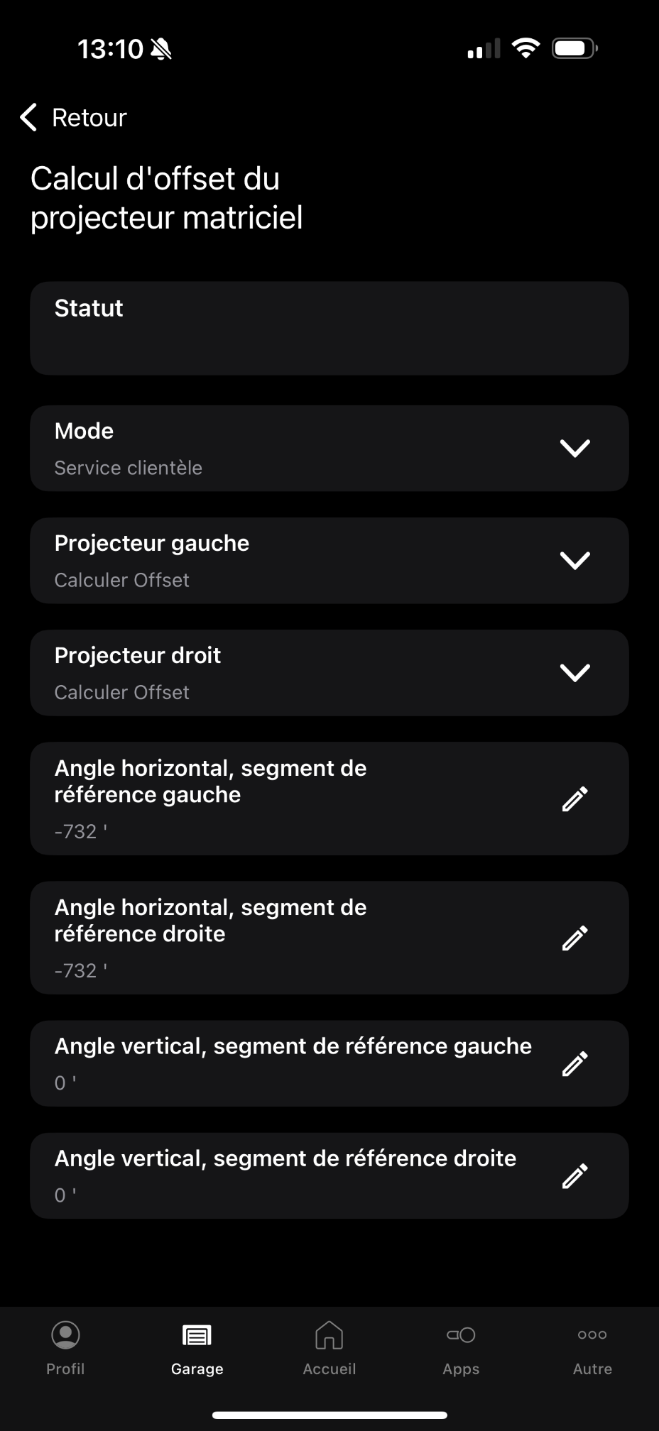 Je rencontre un problème avec les feux matriciels de mon Audi TTS, au niveau du plein phare avant gauche. En effet le plein phare est trop haut, cela génère donc une zone d'ombre entre le plein phare et le phare de croisement. La fonction matriciel est parfaitement fonctionnelle!