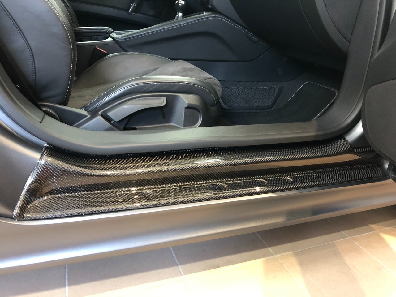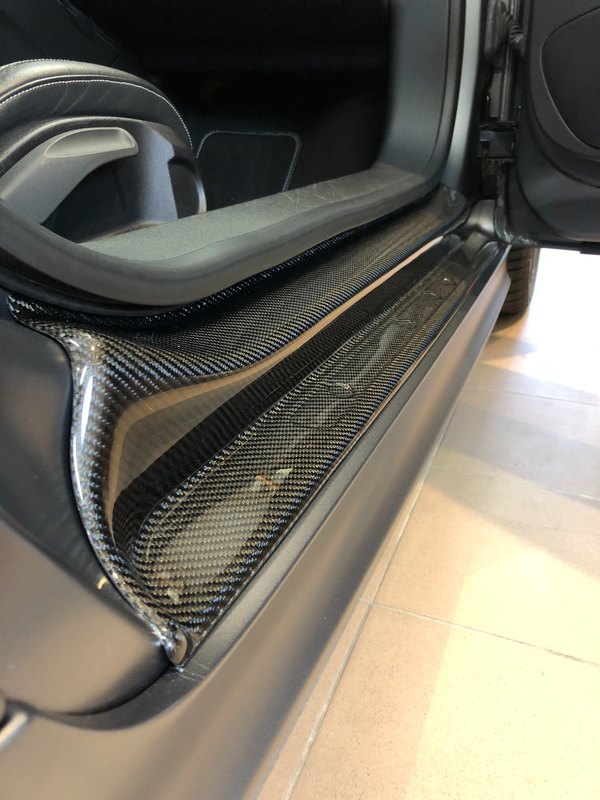 Bon, j'espère que cette fois si ça ne passera pas pour un détail au yeux de certains , car j'ai enfin reçu des pièces que j'attendais avec impatience. Les seuils de porte en carbone. Pour remplacer les seuils originaux, pour rappel ça rassemble à ça. Une fois posé ça donne ça Vous l'aurez, je n'en doute pas, remarqué qu'il n'y a pas les baguettes alu "TTS". Il faut en fait les récupérer sur les anciens seuils. Mais comme vous pouvez le voir sur la photo, elles ne sont pas neuves et je n'ai pas envie de remonter ça...De plus, ça ne se détail pas chez Audi, c'est livré avec les seuils de porte (environ 200€ pièces) Plusieurs solutions : - racheter des seuils de porte neuf pour récupérer les baguettes (ça fait cher la baguette) - ne rien mettre (mais ça ne va pas faire très beau). - faire repeindre mes baguettes dans la couleur de la voiture, ou le gris clair des lames et leur poser un autocollant avant le vernis (pas mal et pas cher). - trouver quelqu'un qui fabriquerait des baguettes en alu comme ça, pose d'un stickers et vernis (mais je sais pas si ça se trouve quelqu'un qui fait ça). - acheter des seuils de porte d'occase...encore faut il en trouver en bon état. Si quelqu'un à un avis sur la question je suis preneur -