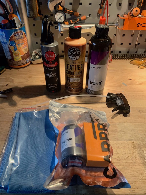 Petite réception du jour: -Traitement vitre déperlant -Traitement anti bué -Soin cuir -Décontaminant fereux - -