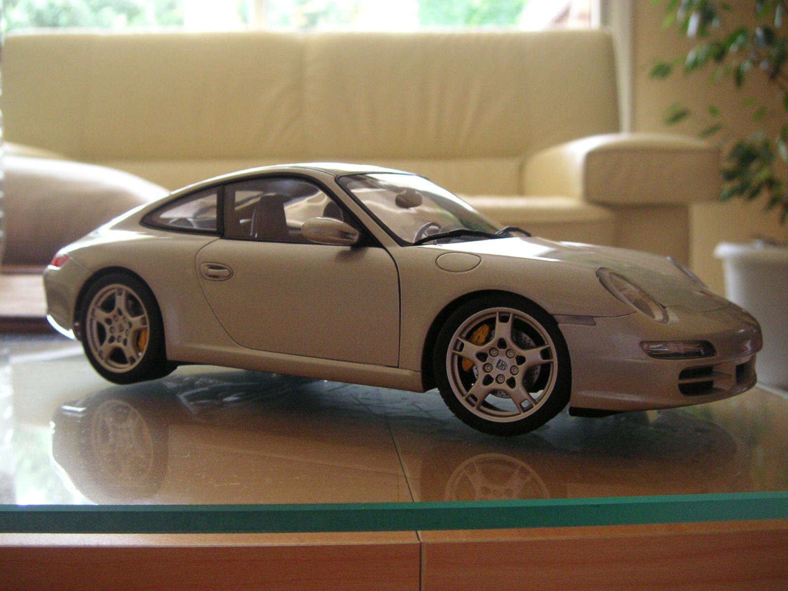 Voila voila , c'est tout frais , elle vient d'arriver! alors vous l'avez reconnue , c'est la 997 S de Autoart vraiment tres tres bien finie , du Autoart koi! Vous aurez remarquez que je ne me suis pas privé car j'ai pris l'option à 12.000€ que sont les freins en ceramiques