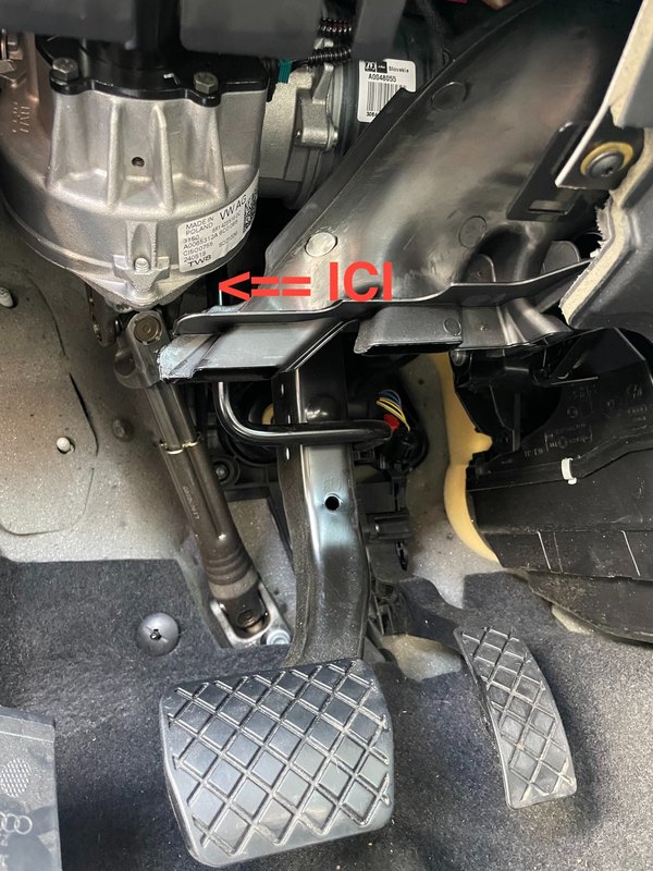 Pas de bruit du tout, pas de difficultés à tourner le volant, aucun voyant, rien de rien... si la pédale n'avait pas glissé un peu, on aurait jamais vu le problème.