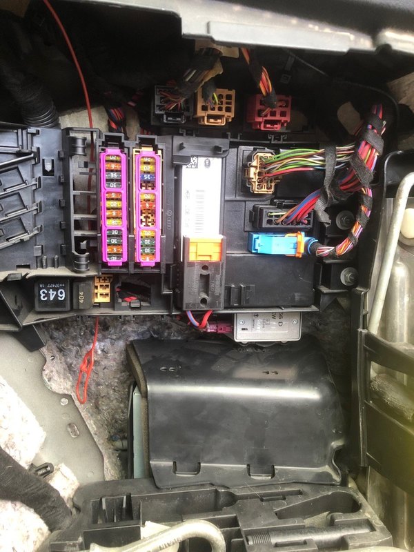 Bonjour. Bon j'ai un peu avancé. J'ai testé le circuit des antibrouillards arrière entre les platines des ampoules AB et le connecteur femelle qui est branché sur le calculateur qui se trouve juste a cote du cric, a droite dans le coffre. J'ai bien une continuité entre les broches du connecteurs et les 2 broches + des ampoules AB. Donc logiquement la panne se situe entre l'interrupteur de phares et la broche male du connecteur situé sur le calculateur. Y a t'il moyen de démonter le calculateur (boite noire) afin de contrôler les fils arrivant a ce connecteur? C'est le connecteur bleu que l'on voit sur la photo. D'avance merci -