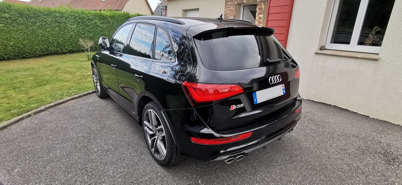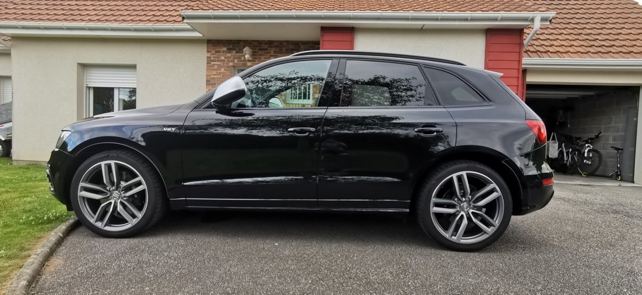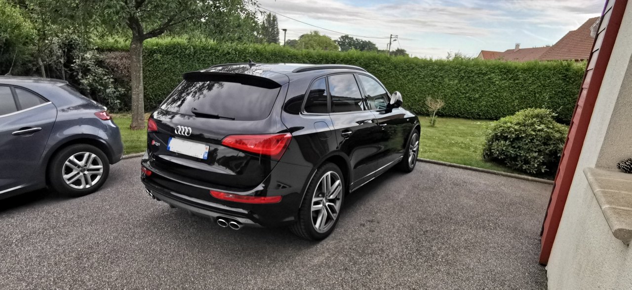 Autres (texte libre)... : Petite présentation de notre SQ5, donc comme dit plus haut c'est un SQ5 de 2015 en provenance d'Allemagne, à l'origine c'est un 313 reprog à 356cv (vérifié au banc: 308 origine -> 356 après reprog) c'est l'ancien propriétaire qui l'a fait reprog (donc entre l'importation et nous) qui l'a gardé que 6mois (pour cause de l'arrivée du 3ème enfants). A l'origine nous sommes plus BMW, et étions parti sur un X3 35D mais après quelques BMW, et en ayant pesé le pour et le contre, comme l'habitabilité, le son de l'échappement, le prix, la monte de pneus (pas asymétrique)etc... Et une bonne occasion pas loin, nous ont fait partir sur ce SQ5. Il est donc noir, avec quelques options sympas, comme les jantes 21", vitres surteintés, sièges Alcantara, volant méplat, pack carbone, Bang Olufsen, Attelage électrique...Finalement le nécessaire, me manque juste la camera de recul pour laquelle je m'étais habitué sur mes précédentes autos. C'est aussi un peu le pourquoi de ma 1ère visite sur ca site, pour chiner quelques infos sur l'éventuelle installation d'une camera de recul. Sinon je suis assez satisfait de cette auto, très bonne perf forcement, agrément de conduite impressionnant sur long parcourt, juste un peu déçu par la conso mais vu que c'est un véhicule qui sert que les w-e et les vacances (et surtout comparé à ma précédente frugale auto) c'est pas bien grave. Voila voila