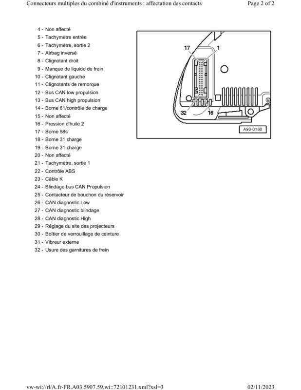 Petit up J'ai trouvé l'affectation des pins sur mon contact et je ne vois pas pin "voyant moteur" ou autre qui pourrai faire penser à ça (voir photos) Donc soit sur ma config je n'ai pas de voyant moteur (ce qui me choquerai pas vu que j'ai tout le diag moteur sur l'écran central du compteur) ou alors mon voyant moteur est sur une des pin avec un nom de sorcier (comme par exemple : "Borne 31 (capteur) ou autre...) Quelqu'un à connais cette partie et peu éclairer ma lanterne ? Merciiiiiiiiiiiiii ! -