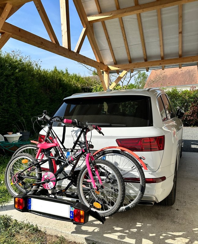 18. Bonjour à tous, J'ai deux questions, une légèrement plus urgente que l'autre dont voici l'intitulée : Je suis obligé afin d'emmener deux fois par semaine les vélos de mes filles à l'école, d'acheter un porte vélo sur attelage... Après avoir parcouru de nombreux sites internet ainsi qu'avoir discuté avec mon concessionnaire je me retrouve dans l'embarras avec ce porte vélo sur attelage. Sur tous les sites internet de vente de ce type de produit, il est inscrit : incompatible avec les véhicules ayant les pots d'échappement DROIT. En l'occurrence le Q7 dispose de pots d'échappement DROIT mais en plus il y en a deux Chez AUDI on me dit que ça ne craint rien, chez Feu Vert on me dit que ça va bruler et chez Norauto on me dit pour faire 20kms par semaine ça craint rien... Avez-vous eu vous même déjà utilisé ce type de dispositif sur attelage ? Y a t-il vraiment un risque pour faire effectivement 9 kms aller retour matin et soir ? Je ne sais pas si cela à une importance, mais j'ai les suspensions pneumatiques et l'attelage électrique. Et voila la deuxième : J'aimerais acheter l'Audi Entertainment Mobile, facturer 1600€ chez mon concessionnaire, qui m'a plus ou moins laisser entendre que c'était de la cagade... La pré-dispo est bien derrière les sièges sous l'appui-tête, cela semble facile à installer, une prise alim et le tour est joué... Je me dis que ça peut être pratique pour les longs voyages afin de distraire les enfants derrière, mais je me fit au concessionnaire qui me dit qu'un bon iPad ferait 100 fois mieux le job... Je précise que le but est uniquement de regarder des DVD en roulant et éventuellement aller sur les différents site de STREAMING et encore cela reste un plus. Quelqu'un a-t-il ce dispositif ? Est-ce opérationnel ou pas ? Et si quelqu'un est vendeur de ce produit je peux être preneur ! Parce que 1600€ si c'est comme indiqué par le metteur en main de chez Audi, ça me fait un peu suer… Navré pour ce post extrêmement long ! Merci d'avance pour vos réponses.