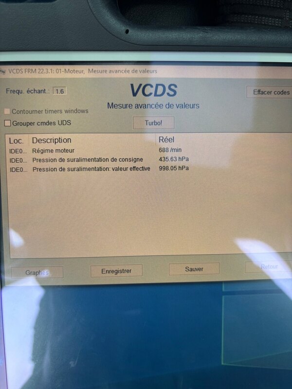 @Tonyy59 Je te laisse regarder les photos que je t'ai mis ci-joint. Y'a le code défaut sous VCDS et les photos d'une durite déboitée (que j'avais d'ailleurs essayé de fixer avec un collier mais en vain) et le turbo démonté. -