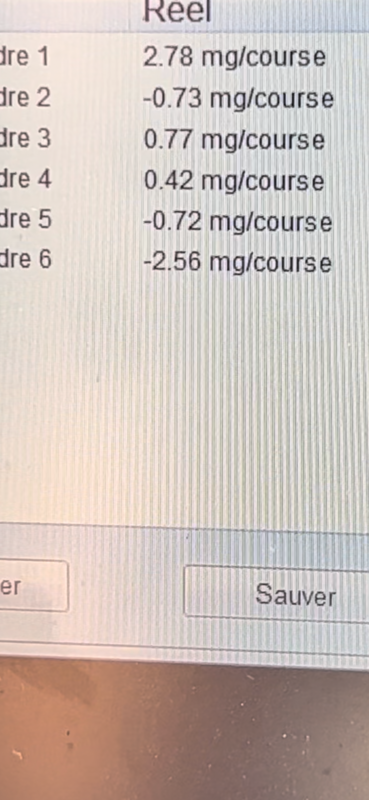 bonjour a tous suite a mon soucis d accoups ou ratée je ne sais pas trop comment décrire j ai fais un video que j'arrive pas a poster d'ailleurs avec mes valeur d'injecteur au moment ou elle fais les accoups . j'ai constaté une énorme différence pour le 1 et le 6 comparé au autres injecteurs pendants les accoups mes comme je n'y connais rien .... dites moi si c'est normal pour vous ? du coup voici la Photo merci d'avance pour vos réponses est votre aide