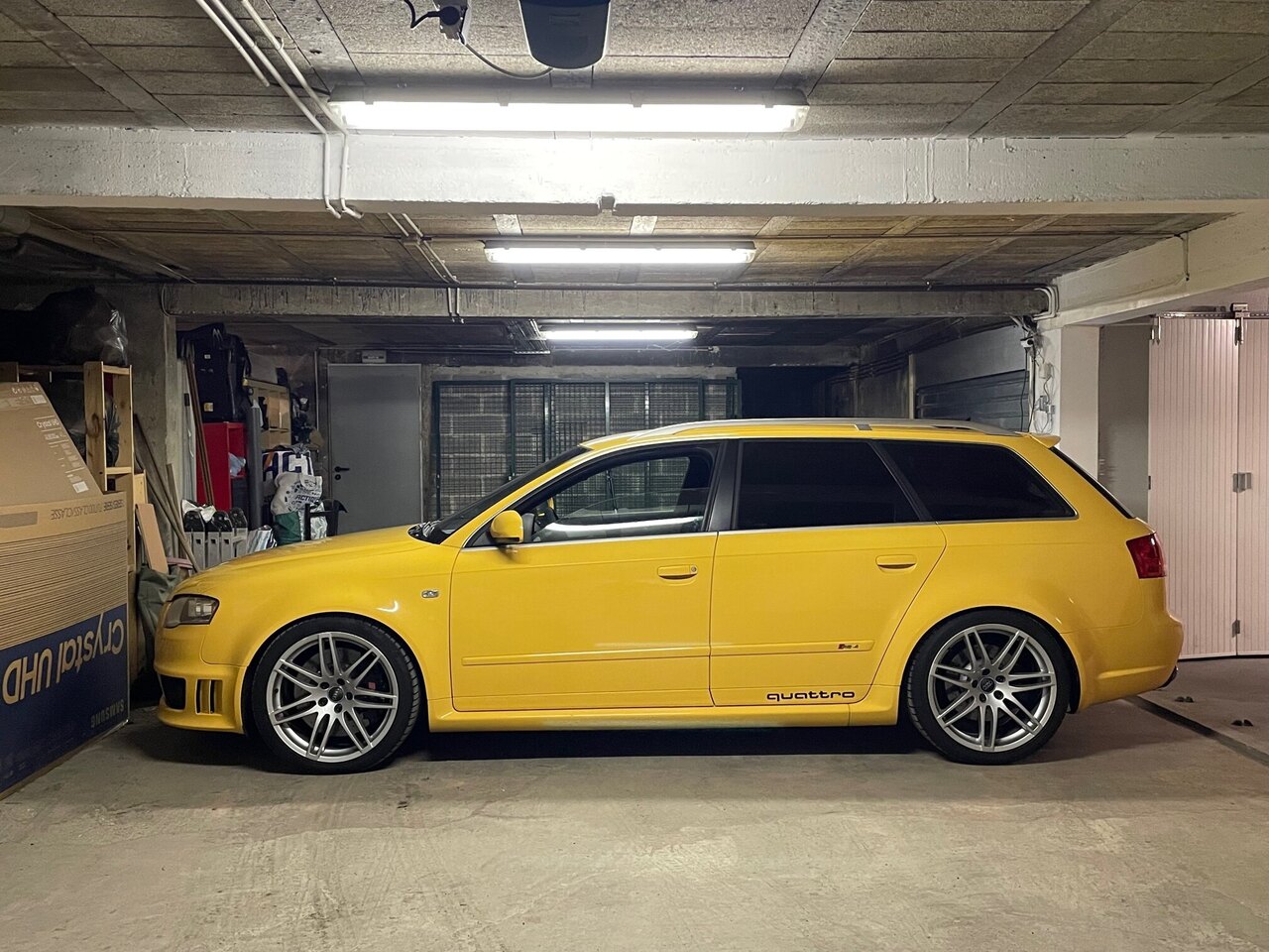 Je vais déjà rouler avec pour faire sa connaissance. Habitué à Porsche (964 RS de 1992), ça fait un choc de passer dans le monde civilisé d'Audi : direction assistée, climatisation, sièges chauffants, GPS, etc. Même datée de 2006, je viens de faire un saut brutal dans le futur et les deux devraient bien s'entendre. Donc avant d'en faire une arme de guerre avec un compresseur je vais la kiffer déjà comme elle est Sa copine de garage :