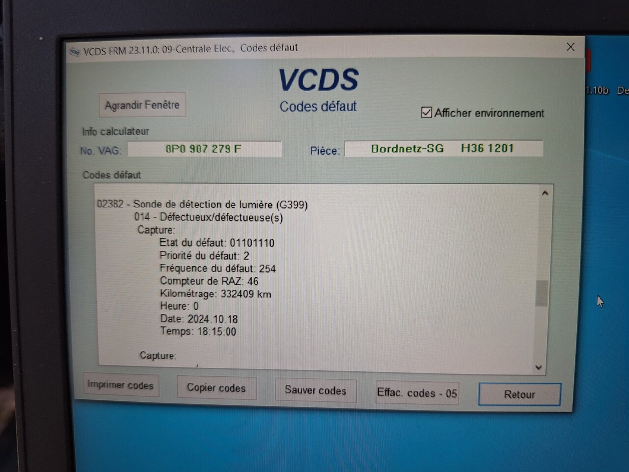 Voila j'ai rajouter les codes défaut du capteur de lumière/pluie -