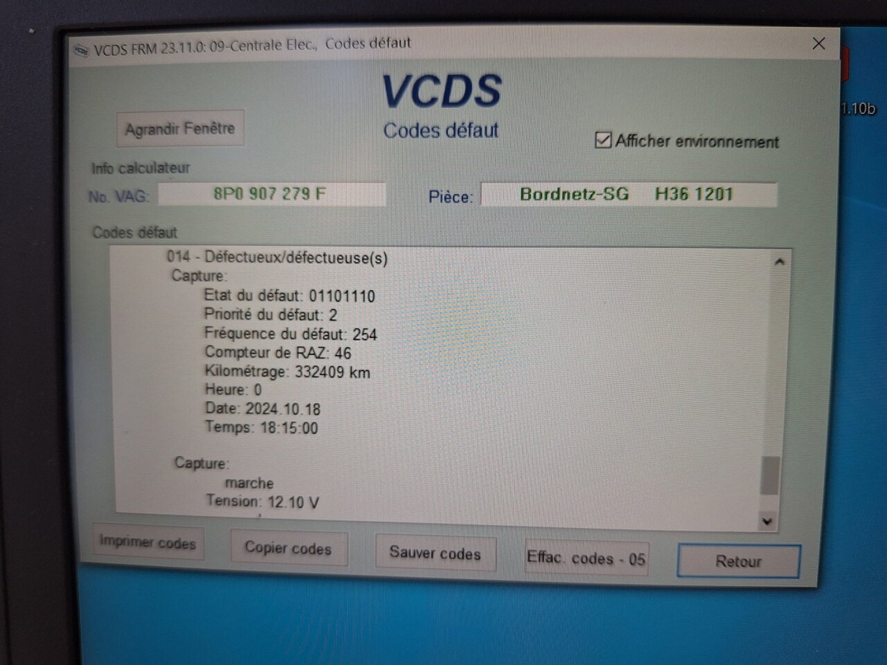Bonjour, Je viens de faire l'aquisition d'une A3 8P de 140cv, j'ai pas encore les sous pour faire les réparations mais le capteur de lumière/pluie est HS sauf que c'est l'enfer ce bip ... Je suis pas trop fort pour me servir du VCDS/Vag Com et j'aurais aimé savoir si c'était possible de désactiver le bip qui dit phare de commande/essuie glace automatique défectueux, je précise hein mais les feux et les essuie glace fonctionne nickel, je pense que c'est le capteur ou peut être le cablage mais la j'ai pas les sous pour le moment de faire ça réparer Dites moi si vous voulez les codes défauts j'éditerais mon post Merci d'avance EDIT: Bon j'ai réussi, pour ceux que ça intéresse il faut changer le code dans codage et avec l'assitant de codage désactiver Rain/Light Sensor et bien sur être dans le bon calculateur, possible de le réactivé plus tard mais au moins j'ai plus le bip toutes les 10 secondes qui me rendait fou -
