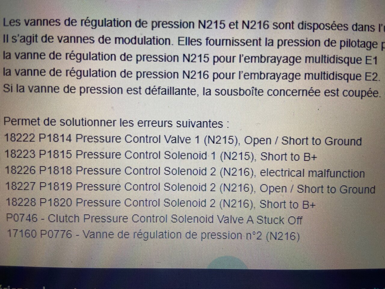 Une fois le voyant qui c est allumé voici le retour les problemes de boite effacé en amont au bout de 10mn+ voyant boite dysfonctionnement…. voici la lecture.. -