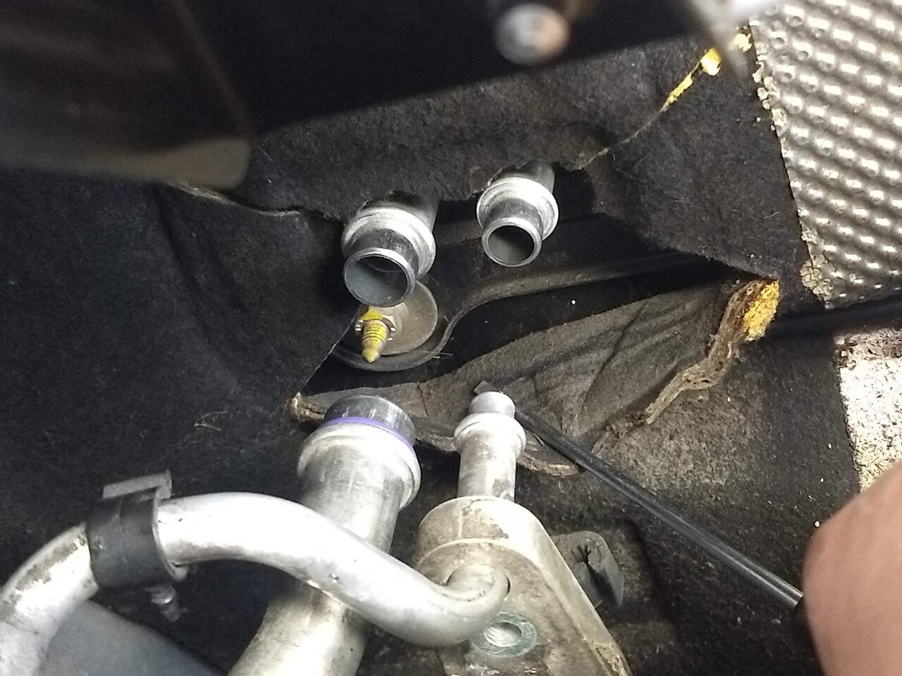 Bonjour @FVV, Pour ce qui est du capteur blanc, je l'ai enroulé à un fil de fer afin de pouvoir m'aider de ce fil pour remettre en position le capteur au moment du remontage. Pour ce qui est des fixations côté moteur, il y-en aurait deux selon les informations précieuses communiquées par @Maxou79 en messagerie privée. Une vis se trouve juste à côté des tuyaux de clim (voir photo jointe) L'autre plus proche des tuyaux d'eau, en contrebas (voir message de @canard40 plus haut) Je n'y suis pas encore en ce qui me concerne... Pour les arrivées d'eau, est-ce que quelqu'un sait s'il est vraiment nécessaire de vider le circuit complet ? Ou est-ce que la perte de liquide est limitée quand on demonte les raccords ? -