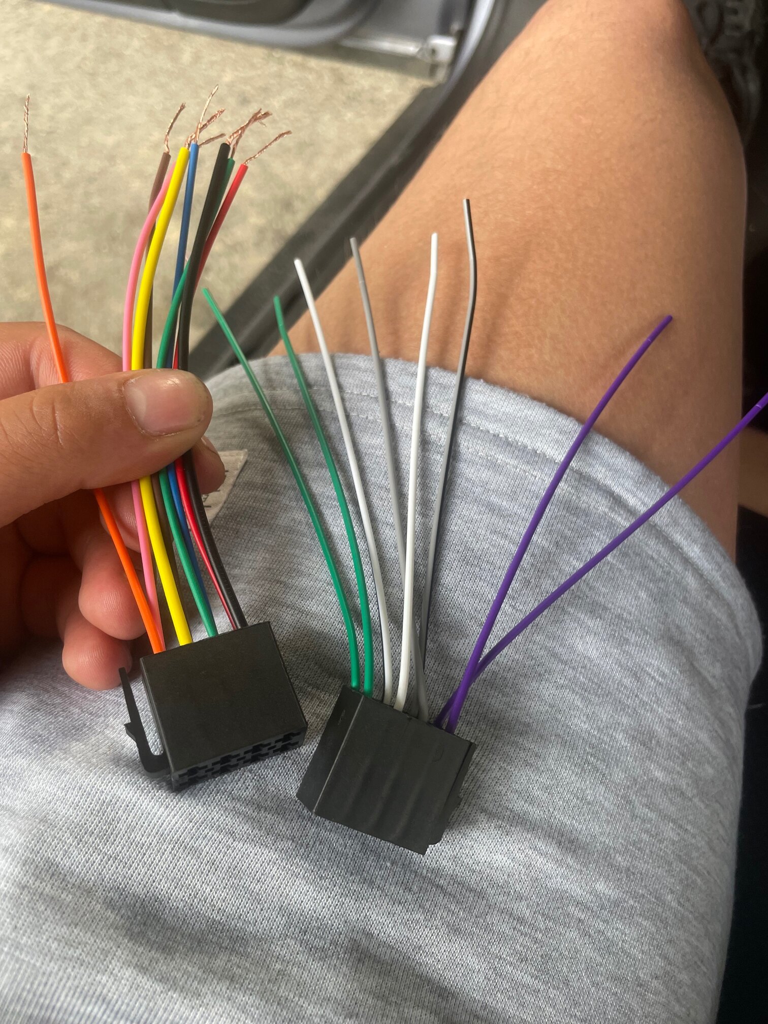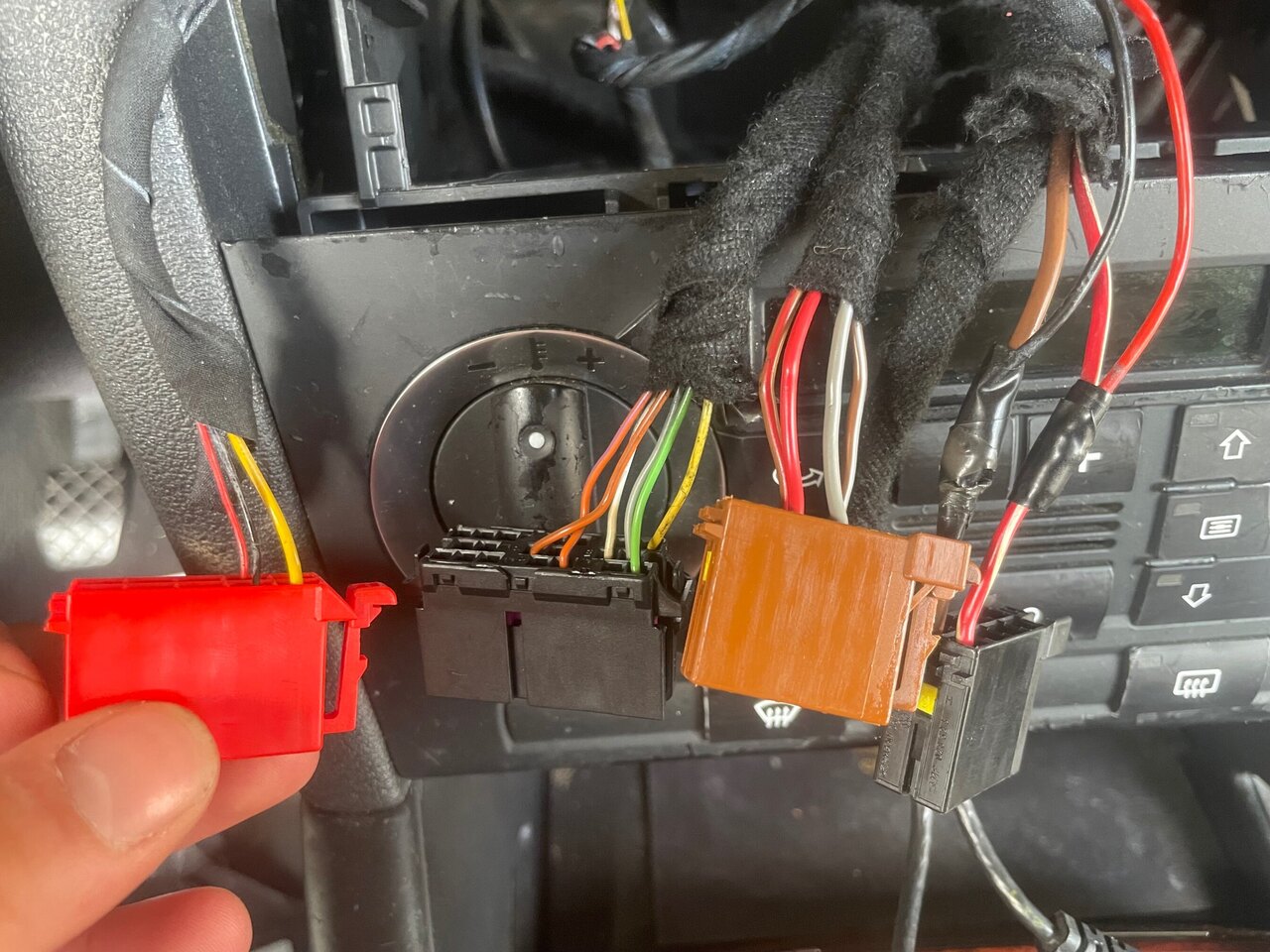 1. Bonjour à tous, j’aurais besoin d’aide car je suis entrain de changer mon poste Audi concert qui est d’origine pour passer sur un écran, hors mon poste d’origine a 4 branchement et mon nouveau en a que 2, j’aimerai savoir quel raccord faire car je ne m’y connais pas du tout en câblage et je ne sait pas quel fils correspond a quoi et je n’est trouver aucune vidéos qui as les même couleurs de fils que les miens, je vous met les photos de mes branchement d’origine et ceux que j’ai eu pour faire mon nouveau branchement sur le nouveau poste branchement sur la voiture directement : boîtier noir : - rouge + rajout rouge (comme on voit sur la photo) - marron + rajout noir (comme on voit sur la photo) boîtier marron : - marron - gris - rouge et marron - rouge boîtier rouge : - jaune - rouge - noir grand boîtier noir : - jaune - vert - gris - blanc - orange et marron - orange et violet