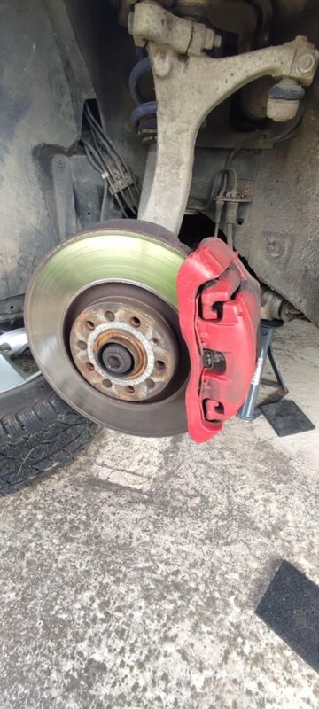 Salut les passionnés ! J'ai ma Didi depuis avril et il y a quelques jours le témoin de freins s'affiche. Petit coup d'œil rapide et en effet les plaquettes sont à faire. Je regarde un peu et là bim, le montage des freins n'est pas d'origine (j'ai une a6 c5 2.5 tdi 163). Les étriers sont différents et plus gros, les disques sont en 320, j'ai une cale de déport pour la jante et à première vue les plaquettes sont les mêmes que d'origine . J'ai voulu relevé les réf mais les étriers ont été peints et c'est illisible. Je m'en remets à vos connaissances de spécialistes Si quelqu'un peut m'aiguiller svp, peut être qu'ils proviennent d'une c6, ou d'une s6 antérieure Merci d'avance les copains 194478d0-7f1e-4e27-90d5-92caeb2c3053 (1).jfif 3f41874c-0d96-4f4a-a305-972ec6eaf50e.jfif b2c891ea-d57f-4fce-b07a-5462ff6b4ea0.jfif -