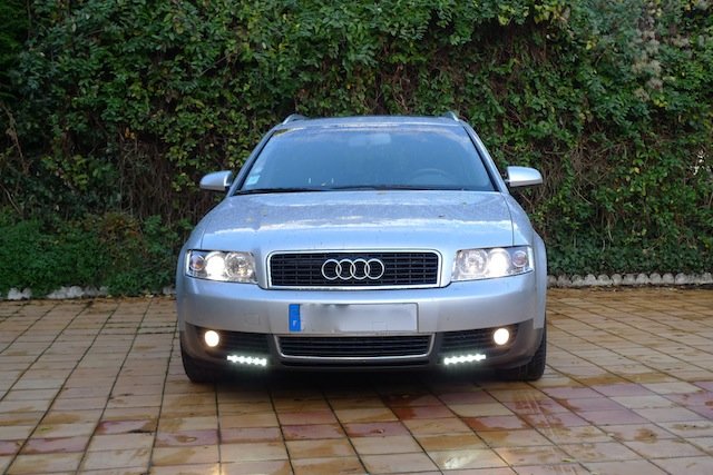 Bonjour, J'ai acheté un kit DRL Philips http://www.lighting.philips.com/fr_fr/consumer/carlighting/1_car_lighting/drl/drl_safety.php?main=fr_fr_consumer_lighting&parent=89083467512&id=fr_fr_car_lighting&lang=fr Pour mettre sur mon Audi A4 1,9TDI 130 de 2004. L'installation a été relativement facile. J'ai intégré les 2 blocs LEDS sous les antibrouillards, au raz de la route (l'espace est juste ce qu'il faut, même en largeur, sans rien casser ni souder etc...)). Pour le branchement, aucun problème non plus. Il suffit de brancher le + et le - d'un petit boitier DIRECTEMENT à la batterie (c'est d'ailleurs ce qui m'a séduit dans ce kit, car inutile d'aller trifouiller je ne sais où pour le brancher, je suis une brêle en mécanique/électronique). Dès que le moteur est mis en route, les LEDS s'allument automatiquement (pratique dans mon cas, puisque je n'ai pas l'allumage automatique des phares etc...). Chose également surprenante, c'est que les LEDS s'allument également à l'ouverture des portes. Plutôt sympa, ça fait un éclairage d'accueil... :bien: ce qui n'existait pas à l'époque où j'ai acheté l'Audi. (Je pense que le boitier surveille la tension batterie, et intervient à chaque variation...). Bref, je vous le recommande. L'éclairage est vraiment bien, même en plein jour (c'est le but, d'ailleurs !) :) Il me reste juste un petit truc à résoudre... Afin d'être en conformité avec la législation, les LEDS doivent s'éteindre lorsque je passe en feu de croisement. Il y a d'ailleurs un 3ème fil sur le petit boitier, à brancher sur le fil d'un feu de croisement, afin que les LEDS détectent l'allumage et s'éteignent. Mais voilà, je ne sais pas sur quel fil brancher. Mon boitier se trouve en haut du compartiment moteur, juste à côté de la batterie (longueur des câbles oblige...). Ce 3ème fil à brancher fait environ 60 cm. J'ai regardé autour du bloc optique, mais dur dur se savoir quel fil correspond au feu de croisement...??? :unsure: Il y a un connecteur branché au bloc (avec des numéros gravés dessus 2 4 6 8 etc...), qui comporte environ 10 fils de couleurs différentes, et lorsque j'ouvre le bloc optique, les câbles correspondant au feu de croisement sont d'une autre couleur !!!!!! :blink: Où puis-brancher ce 3ème fil ? Et aussi, à part le brancher directement au phare, y'a-t-il un endroit plus près de la batterie ? (j'ai peur que le fil soit un peu court...). Merci de votre aide :coucou:
