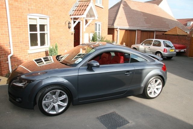 - membre : DADOU021 - année de fabrication : 2007 (en attente ... :colere: ) - voiture achetée neuve / d'occasion : Neuve - modèle (A2, A3old, A3évo, A3new, S4, S4new, S3, S3évo,... ) : TT2 - moteur (cylindrée et puissance): V6 3.2 - préparation moteur (nom du préparateur / puissance obtenue) : / - berline / avant / cabrio,road : Coupé - version (ambiente, ambition, pack plus,...) : - boîte manuelle / automatique / DSG : S TRONIC - traction / quattro : QUATTRO - couleur extérieure : GRIS DAUPHIN - couleur intérieure : ROUGE MAGMA - finition intérieure (tissu, cuir, cuir/alcantara,...): CUIR - jantes (taille / dénomination): TURBINES 18" - pneus (fabricant / modèle): ? - châssis modifié : Non - freins modifiés : Non - options / divers : Magnetic Ride, Audi parking system , sièges chauffants, Bose + concert, alarme + puce GPS, cuir étendu, Rétro. ext. élec. dégivrants escamotables. -