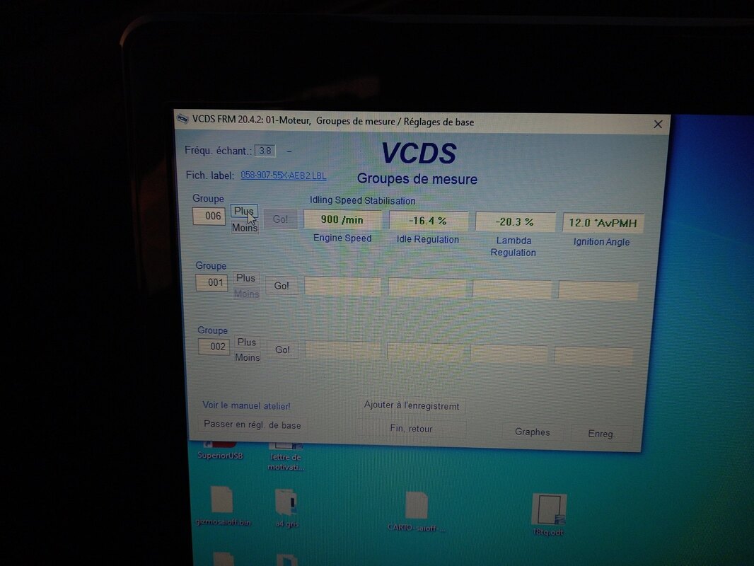 Le moteur a bien tourné pendant une vingtaine de minutes, puis il a commencé à cafouiller, pour finir par caler. En débranchant le DM, elle a tourné rond, et dès que je l'ai rebranché elle a à nouveau cafouillé. J'en ai conclu que le DM est HS. Par contre, quelle valeur doit-on avoir sur VCDS à la lecture du groupe 6 pour la régulation de la lambda ? Cette valeur peut-elle être altérée à cause d'un DM défectueux ?