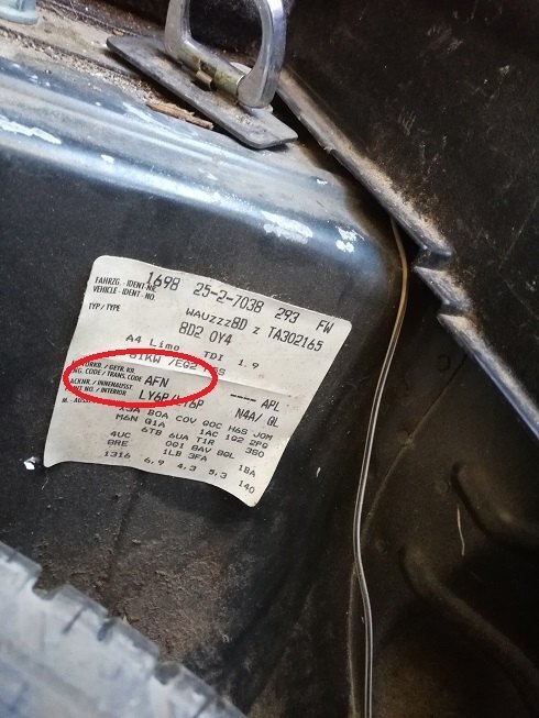 Salut Virginie, Ta voiture a l'air en très bon état, c'est cool vu son âge. Et je comprends que tu veuilles la garder plutôt que d'en acheter une nouvelle... Pour ce qui est du moteur, il y a dans le caisson de la roue de secours l'étiquette avec les codes options (ça ressemble à ça) Soit si tu peux nous mettre la photo de cette étiquette, sinon nous donner le code moteur qui est entouré en rouge sur la photo ci-dessus. Mais, avec cette étiquette, on peut avoir des renseignements pour t'aider. -
