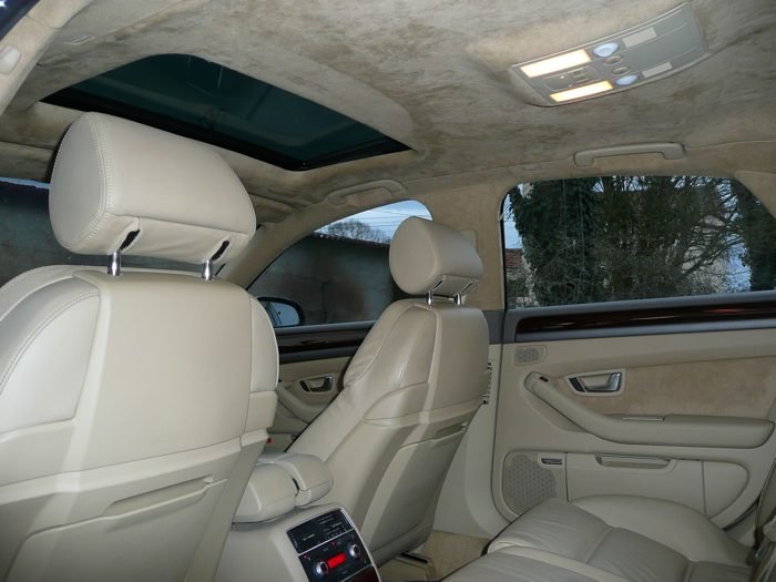 Bonjour, Suite à ma recherche d'une A8 3.0L tdi en single frame qui m'est passé sous le nez et n'entrouvant pas (à mon goût),je viens de réserver une 4.2L essence (ancienne calandre, snifff..) que j'avais déja remarqué depuis 15 jours. Donc, sauf cas de force majeure, je dois la chercher soit mercredi ou jeudi prochain par le train, direction Disney à Marne la Vallée. Ce n'est pas une Avus, mais optionnée comme telle: - Phares directionnels bi-xenon - Toit ouvrant electrique en verre - Jantes 19 pouces - Keyless go - Bluetooth - Sieges sport - Sieges electriques memoire chauffants - Bose - Controle pression des pneus - Toit ouvrant - Ciel Alcantara beige - Pack alu Voila, à voir si d'autres options sont présentes. Quelques photos envoyé par le vendeur: