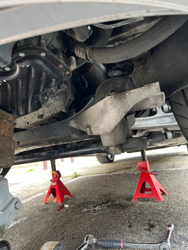 J’en profite du coup pour rebondir sur titine 😂 Le week end dernier j’ai donc changé les 2 supports moteur latéraux. Une 1ere pour moi sur ces voitures. Au début j’ai choisi l’option de desserrer les 4 vis et lever le moteur. Après la 1ere tentative, échec 😂😂 le filtre à gasoil gênait, ça tapait sur le carter de chaîne de distrib, du coup j’ai déposé l’ensemble du filtre pour le rehausser (pas besoin de débrancher les durites), mais ça ne le faisait pas, je sentais que ça tirait partout… 😅 Du coup, j’ai opté de retirer 3 vis en dessous du support sur lequel le support moteur est fixé, juste il y a une des 3 qui tient le berceau alors je conseille de faire côté par côté pour faciliter le tout. J’ai descendu la barre stab pour me donner plus d’accessibilité. Résultat : au démarrage c’est beaucoup doux, je sens plus de petite secousses du moteur. je vous mets 2/3 photos. Merci d’avoir prit le temps de tout lire 😅😜 -