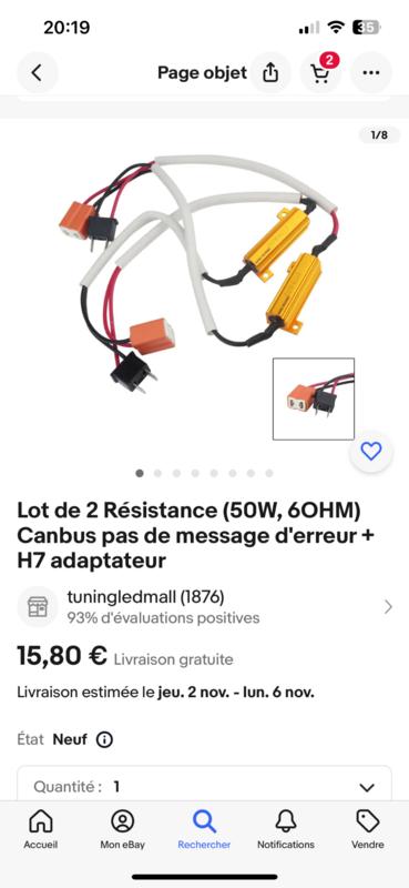 Tes résistances avaient quelle puissance? Sur Q7 pour les AB j’ai été obligé de doubler les résistances car même celles-ci me faisaient un bip. Par contre je sais plus si je les ai mises en parallèle ou en série 😅 faudrait que je regarde mais depuis y’a plus de biiiiiip 😬 les halogènes restent le plus simple mais bon quand tu as goûté à l’allumage des leds c’est difficile de faire marche arrière 😅 -