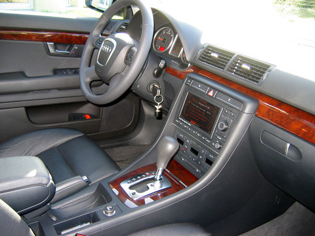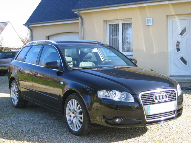Bonsoir à tous, Bon, Eh bien j'ai fini par craquer, C'est avec une petite larme à l'œil que nous avons laissé notre A4 B6 Avant TDI 130 Pack Châssis Sport de 2002 et 110000Km. Sa remplaçante : Une A4 Avant B7 2.0 TDI 140 - Novembre 2007, - 39500Km, - Ambition Luxe, - Boite multitronic 7 rapports, - Noir fantôme nacré et cuir noir, - GPS/TV/Téléphone, - SIC Couleur, - Option : Sièges avant électriques à mémoire + rétroviseurs intérieur et extérieurs jour/nuit automatiques à mémoire, dégivrants et escamotables. J'ai acheté le véhicule en concession avec peinture des pare-chocs, du capot + changement du volant dont le cuir était plutôt abimé. Voilà, j'espère que la belle saura mener à bien sa lourde tâche de remplaçante puisque je n’avais eu aucun problème particulier sur mon ex TDI 130 et ses 110000km au compteur. La grosse interrogation concerne la boite multitronic (mais il semble qu’il n’y ait plus de soucis sur les A4 B7). PS : J'ai également acheté 2 cartes SD 4Go de marque Transcend Réf TS4GSDC (et non SDHC car non compatibles avec le RNSE) pour stocker mes MP3 et remplacer l'adaptateur IPOD Audi que je possédais dans ma B6 et tout fonctionne parfaitement, que du bonheur. En PJ, quelques photos prises rapidement -