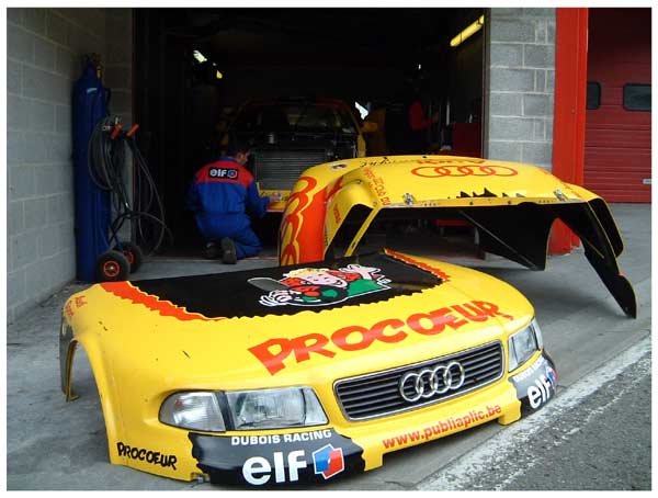 A l'occasion des 12 H Btcs disputées à francorchamps ce WE l'équipe de Franz Dubois étrennait la nouvelle carrosserie 2005. La mécanique est restée la même et ne parvient plus à suivre les meilleures Porsche , Jaguar et autres Bmw. Pour ce demi tour d'horloge la fiabilité de l'Audi à permis d'accrocher la troisième marche du podium. La nouvelle déco avait l'air de plaire au nombreux public présent en ce We estival. @micalement