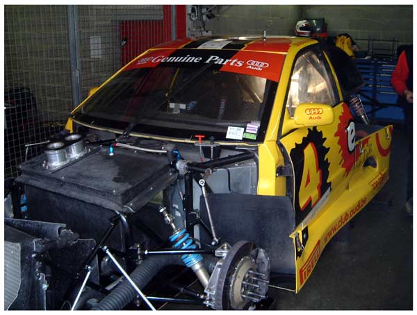 [attachmentid=7046][attachmentid=7042][attachmentid=7043][attachmentid=7044][attachmentid=7045][attachmentid=7046] Les silhouettes partent du même principe que les voitures du DTM. C'est un chassis tubulaire avec un moteur central/arr sur lequel on ajoute une carrosserie polyestere. Ici seul cette carrosserie à changé depuis l'année passée. La base moteur est un 4 cyl Audi bien connu -