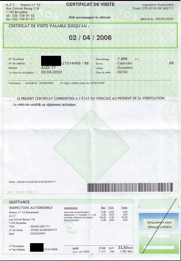 J'ai ouvert ce post parceque les voitures belges et allemande ont mauvaise réputation en france (au niveau des arnaques à la vente). Il faut savoir que beaucoup de chose ont changés depuis 2 ans. Attention après avoir signer de particulier a particulier il n'existe plus aucun recours contrairement à chez vous!!! Donc checker bien Depuis 2 ans la voiture est obligé de passer un contrôle technique avant la vente sauf pour les étrangers, déjà première arnaque s'il n'y a pas de CT sous pretext que pour la vendre a étranger il n'en faut pas, c'est votre choix mais sur cette fiche figure les défauts passable et le kilométrage du véhicule. Plus important l'ancien kilomètrage en parenthèse !!! je vous laisse deviné ou je veux en venir ;-) s'il y'avait 200000 km et l'année après 100000km ca craint surtout le pretext du changement de moteur. voici la fiche CT belge Fiche verte égale CT ok rouge PAS DE CT